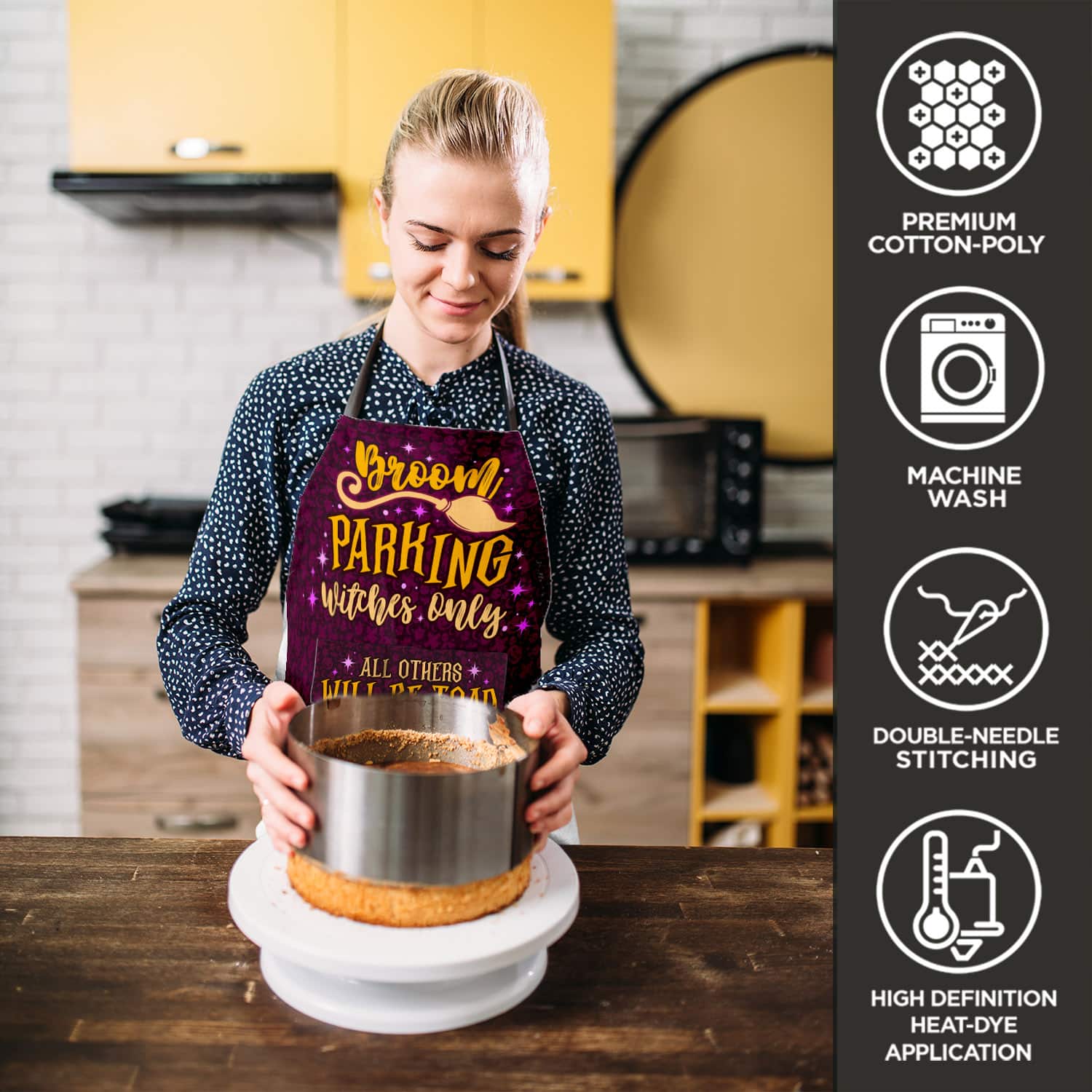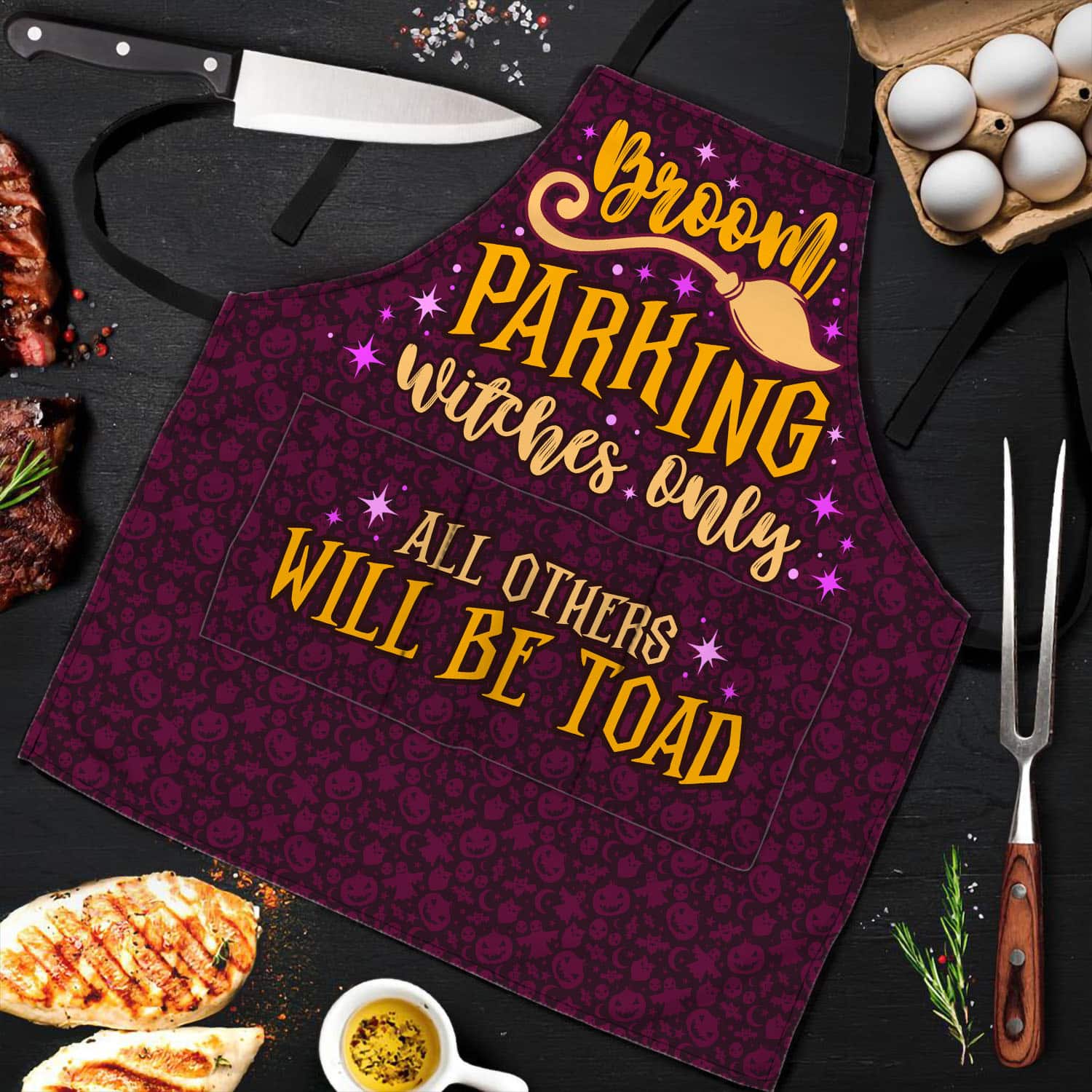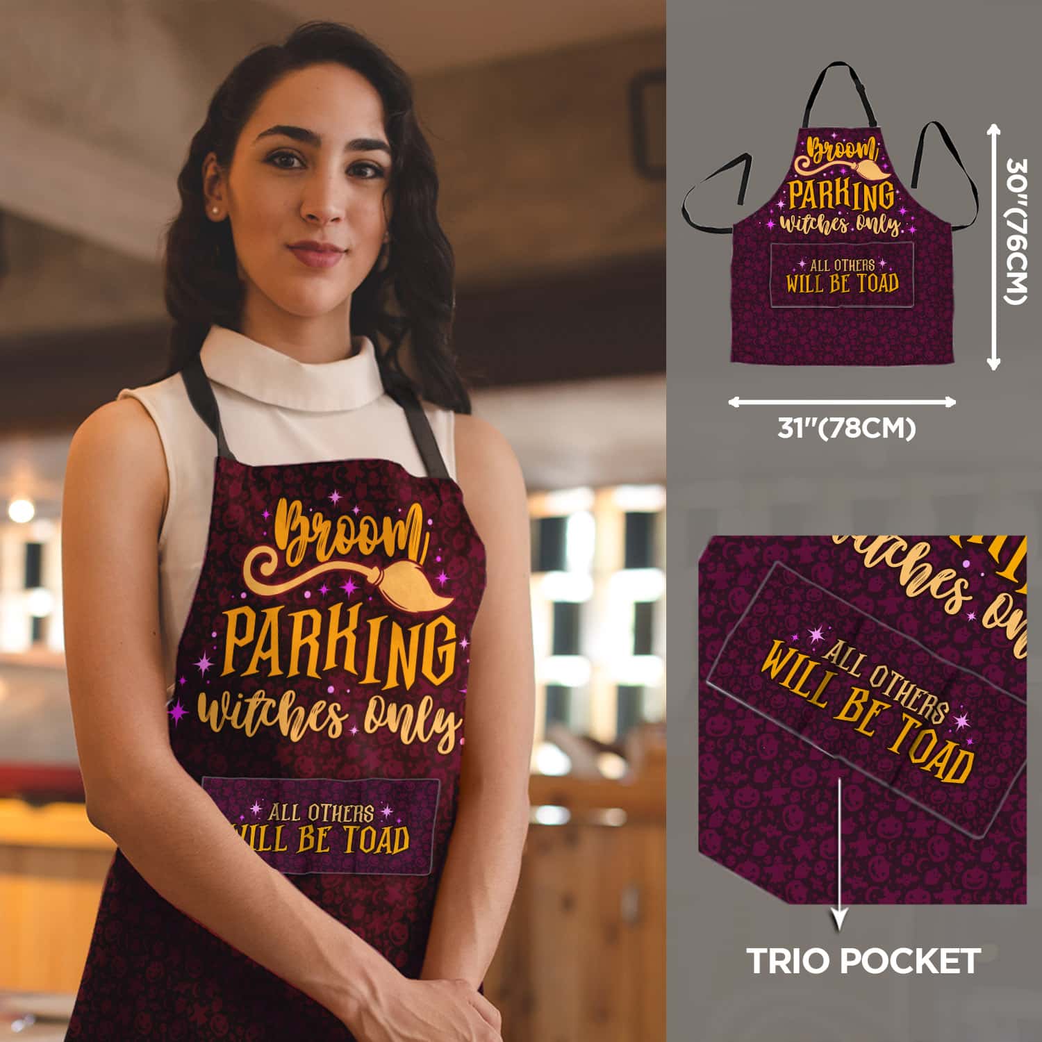 Let’s Shop Broom Parking Witches Only All Others Will Be Toad Funny Halloween Cooking Apron With 3 Pockets!