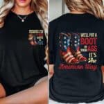 At CubeBik, besides custom apparel, we also offer tees, hoodies, sweaters, raglans, tanks, wall arts, canvases, posters, mugs, blankets, engraved jewelry, personalized necklaces, printed face masks, throw pillows, tote bags, hats, accessories and more on our website, so do not miss our other Brought to You Courtesy Tshirt, Brought to You Courtesy Shirts, Brought to You Courtesy of the Red White and Blue Shirt, We’ll Put a Boot in Your Shirt, We’ll Put a Boot in Your Shirt Women, We’ll Put a Boot in Your Shirt Men, We’ll Put a Boot in Your Shirt on Back, We’ll Put a Boot in Your a T-Shirt. Moreover, all the products are made-to-order and one of a kind custom designs you can’t get elsewhere in normal stores. Let’s discover CubeBik.com now and find your favorite personalized items. We can’t wait to surprise and build beautiful memories with you and your loved ones.