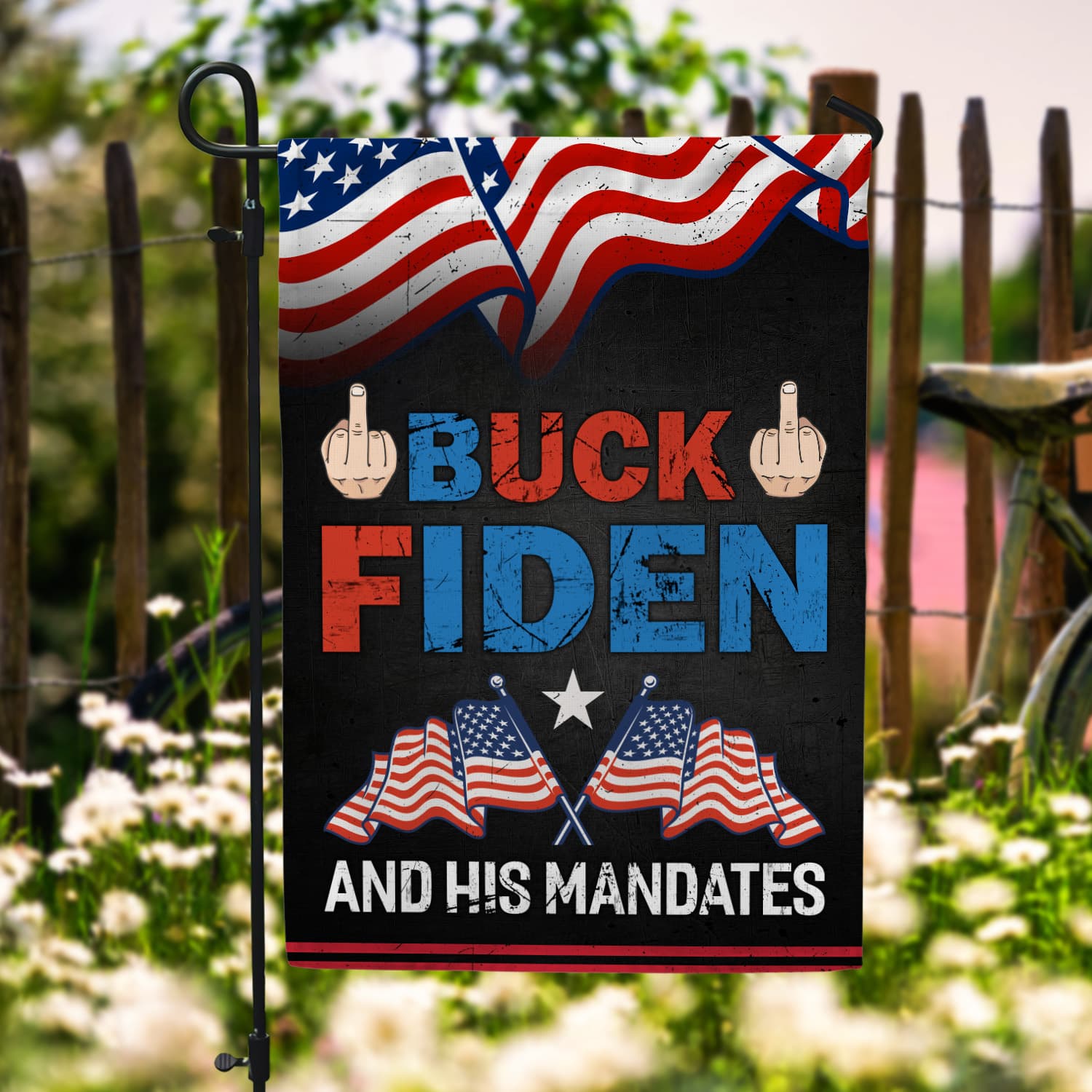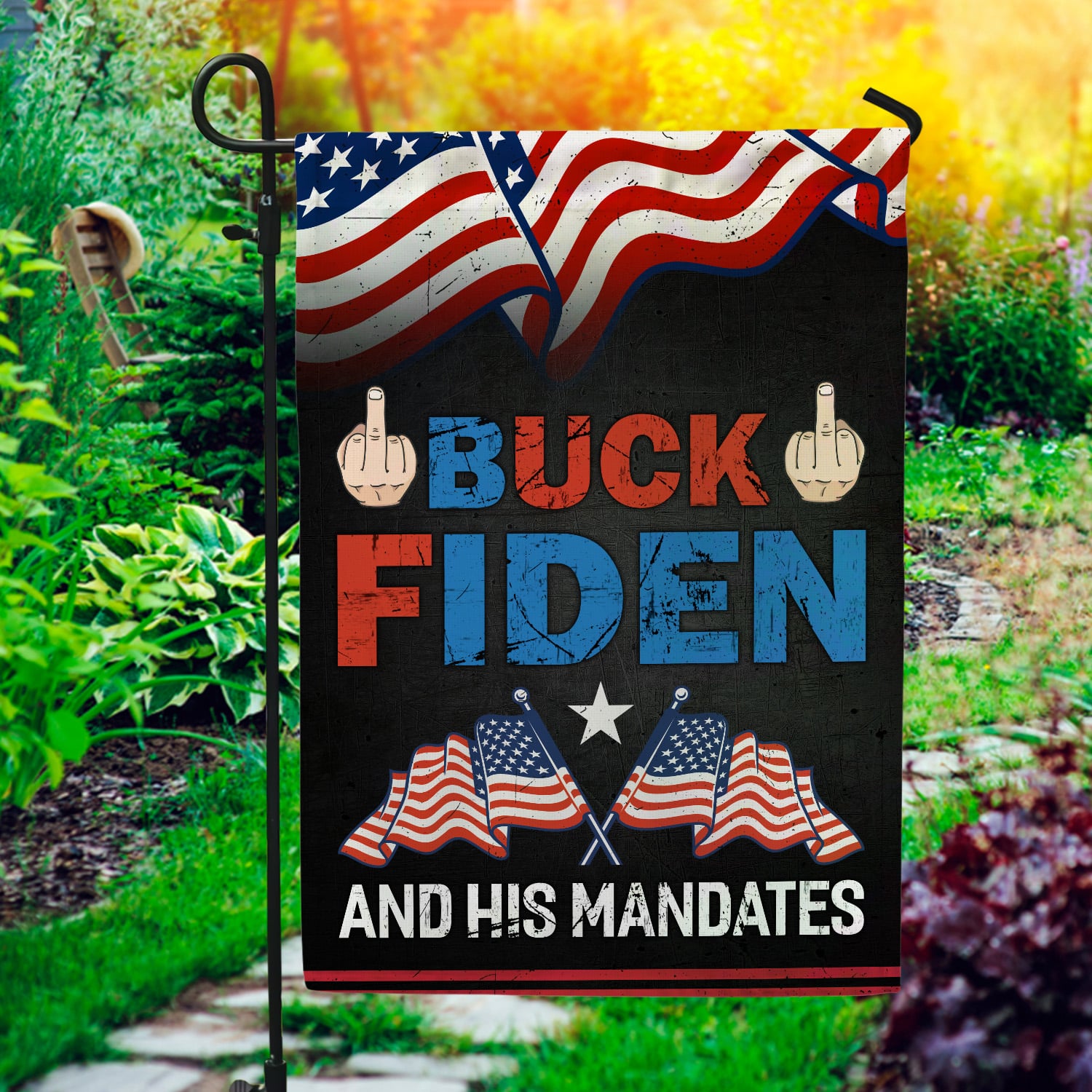 Let’s Shop Middle Finger Buck Fiden and His Mandates Decorative Garden Flag – Funny Biden Political House Flag – Wall Flag!