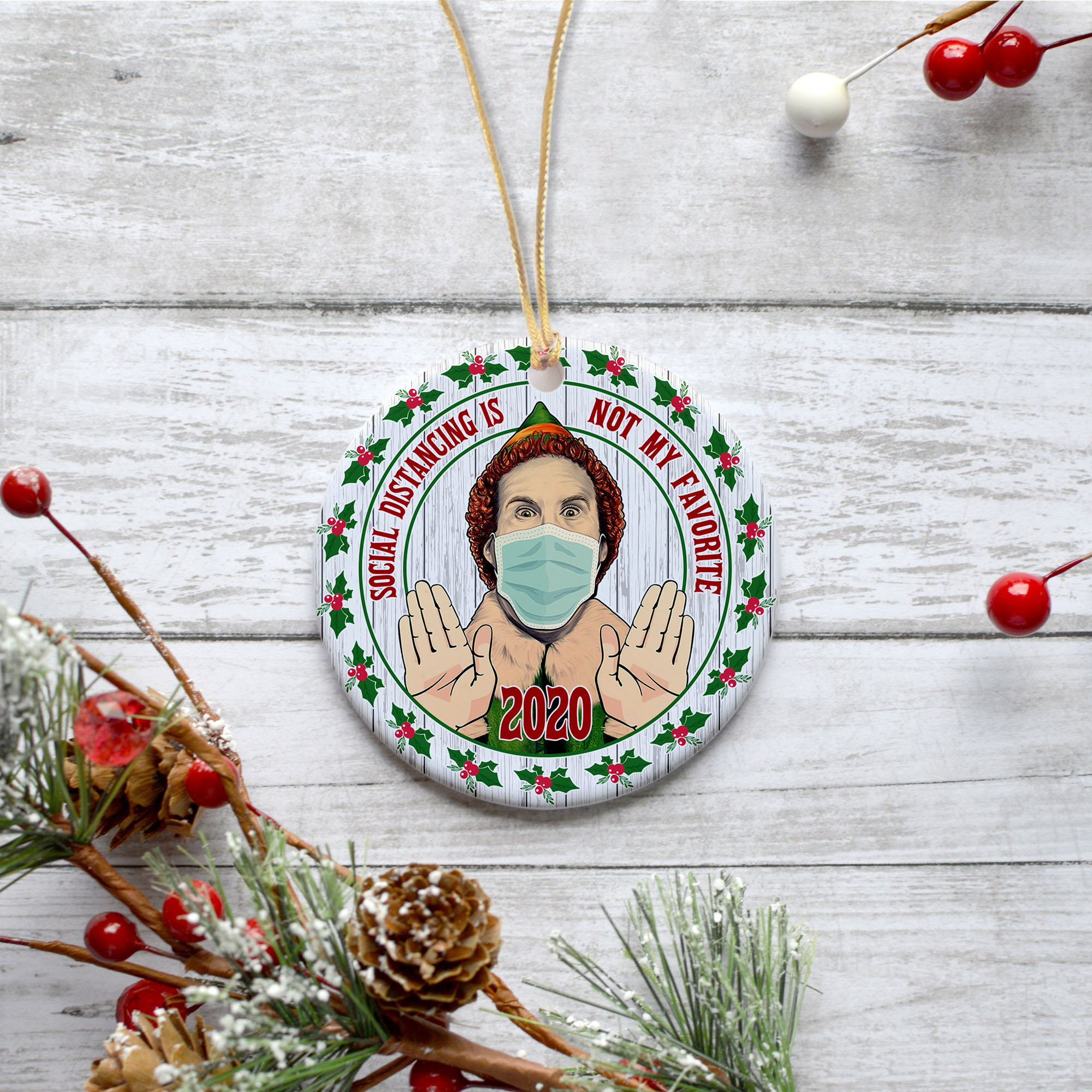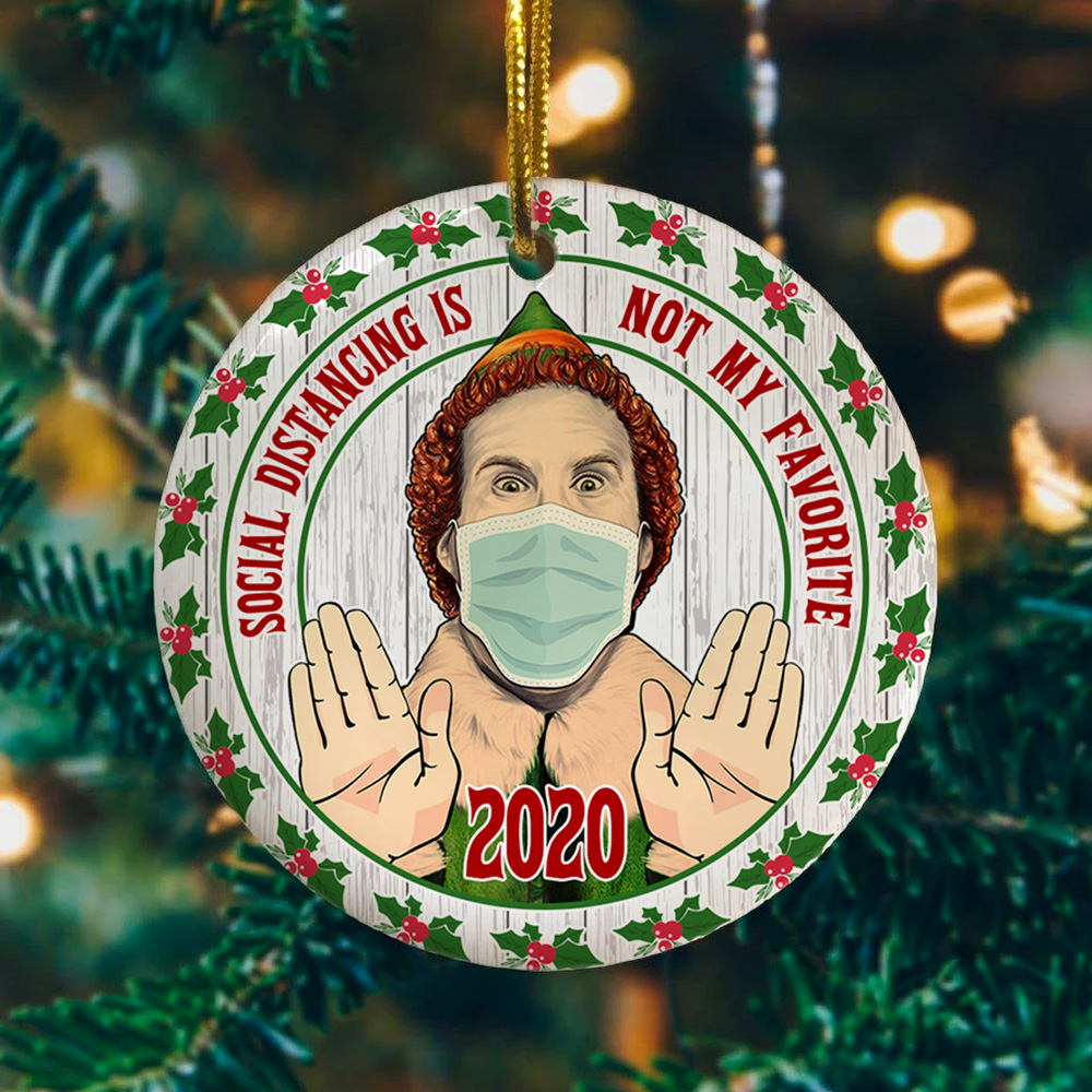Let’s Shop Social Distancing Is Not My Favorite 2020 Funny Elf Wearing Mask Circle Christmas Tree Ornament Keepsake!