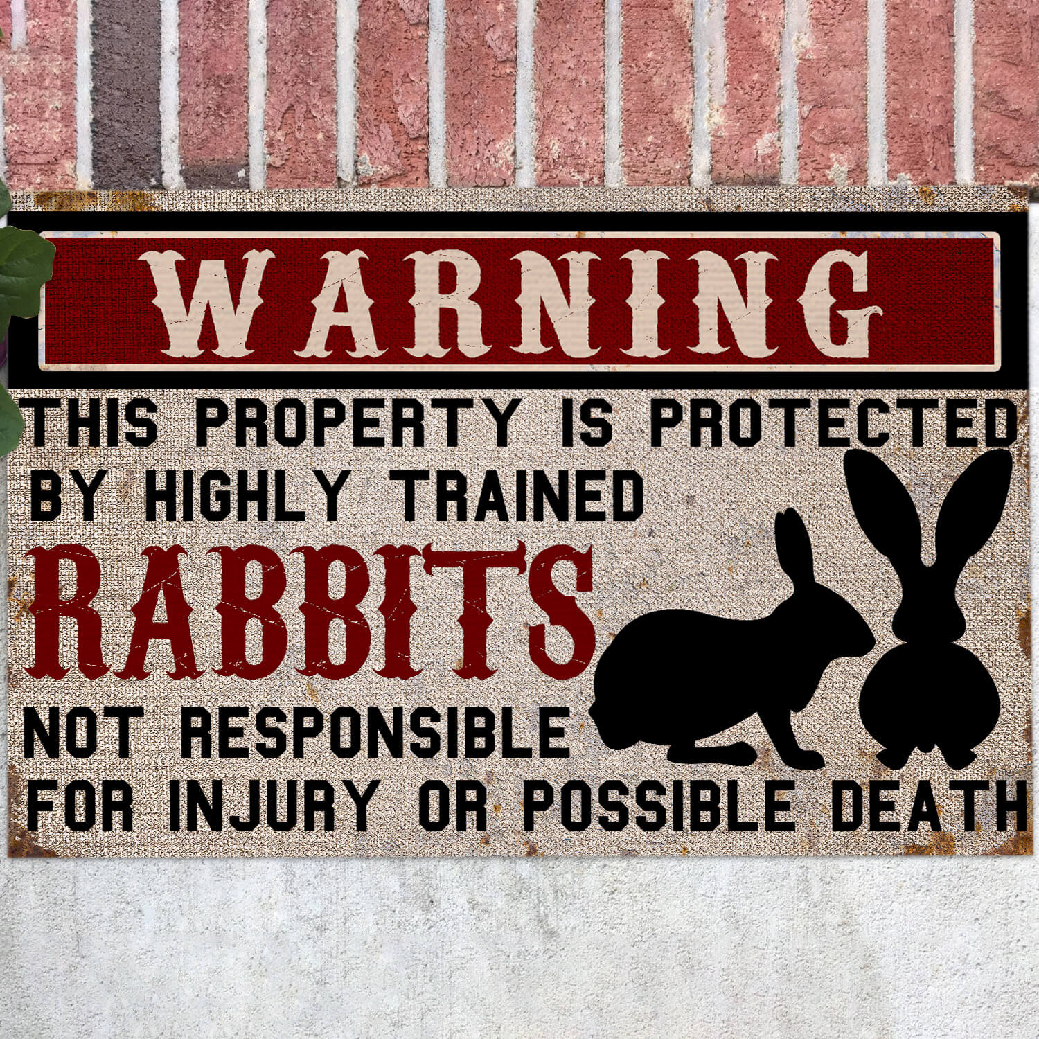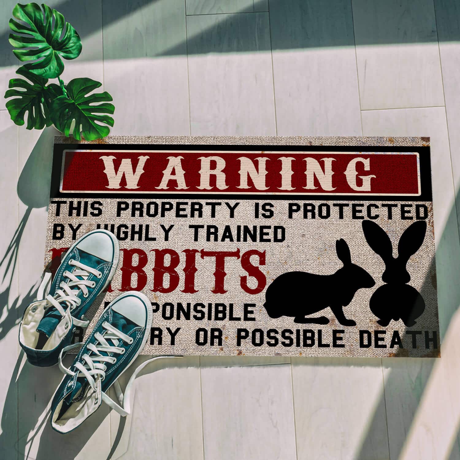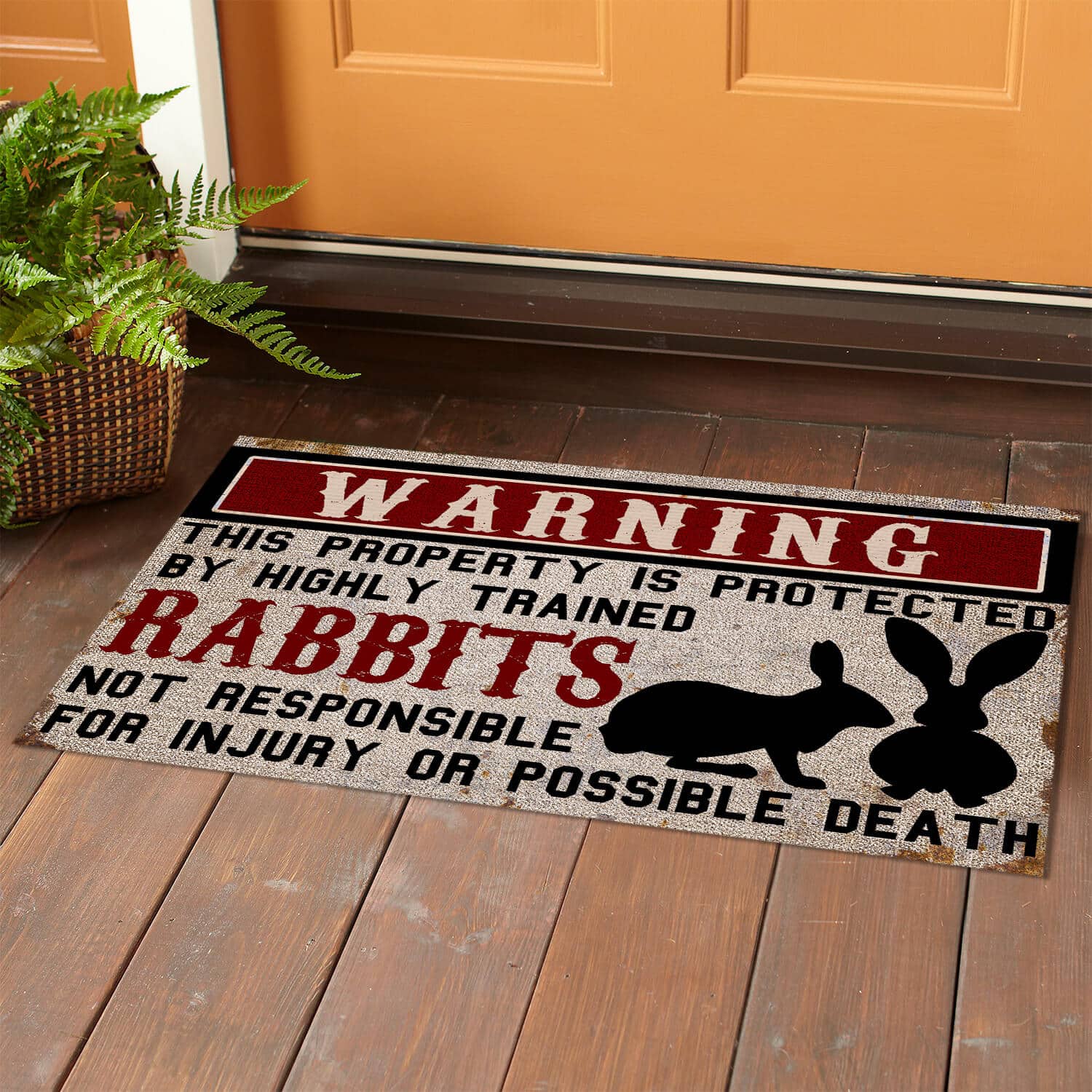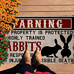 Let’s Shop Warning This Property is Protected by Highly Trained Rabbits Funny Indoor Outdoor Decorative Doormat!