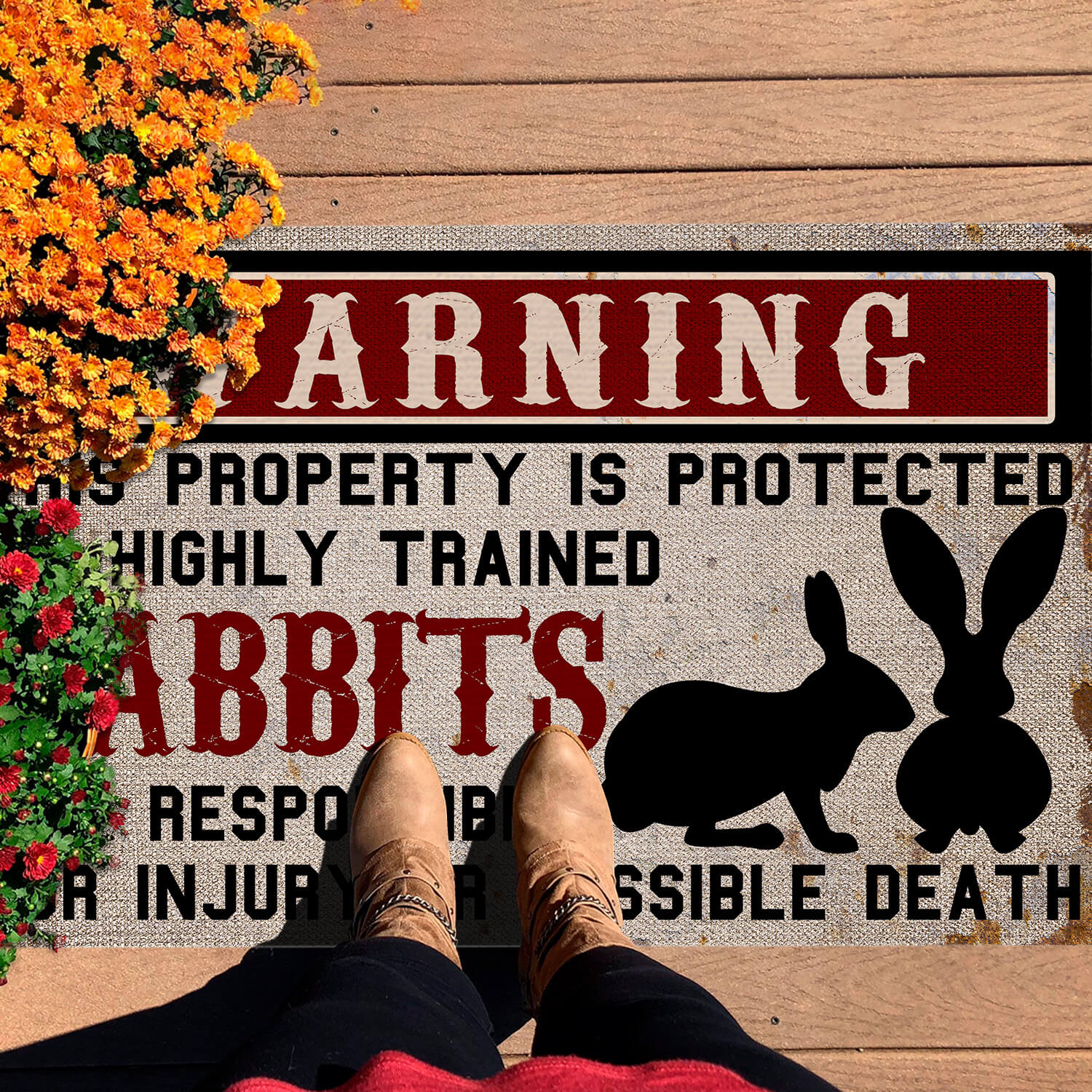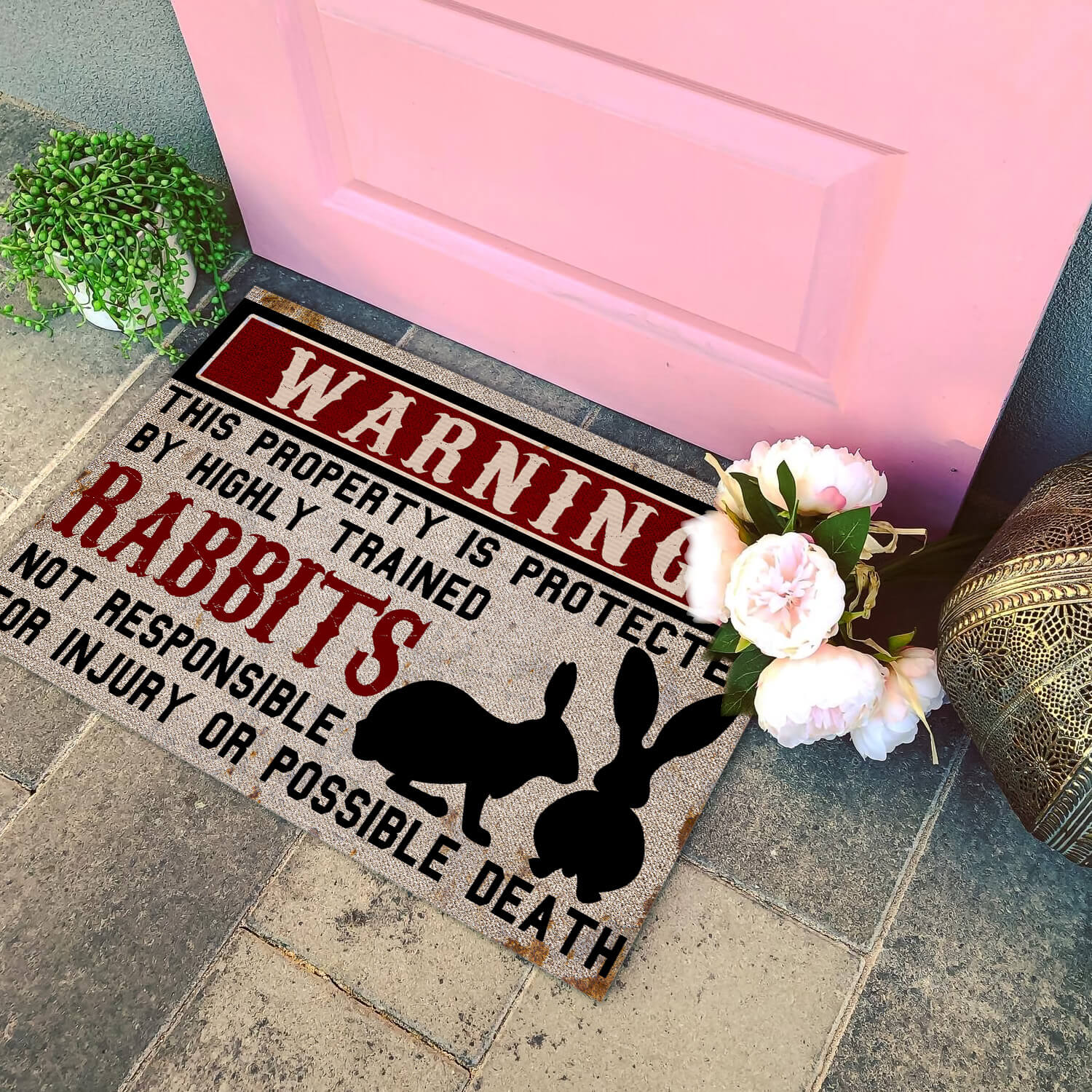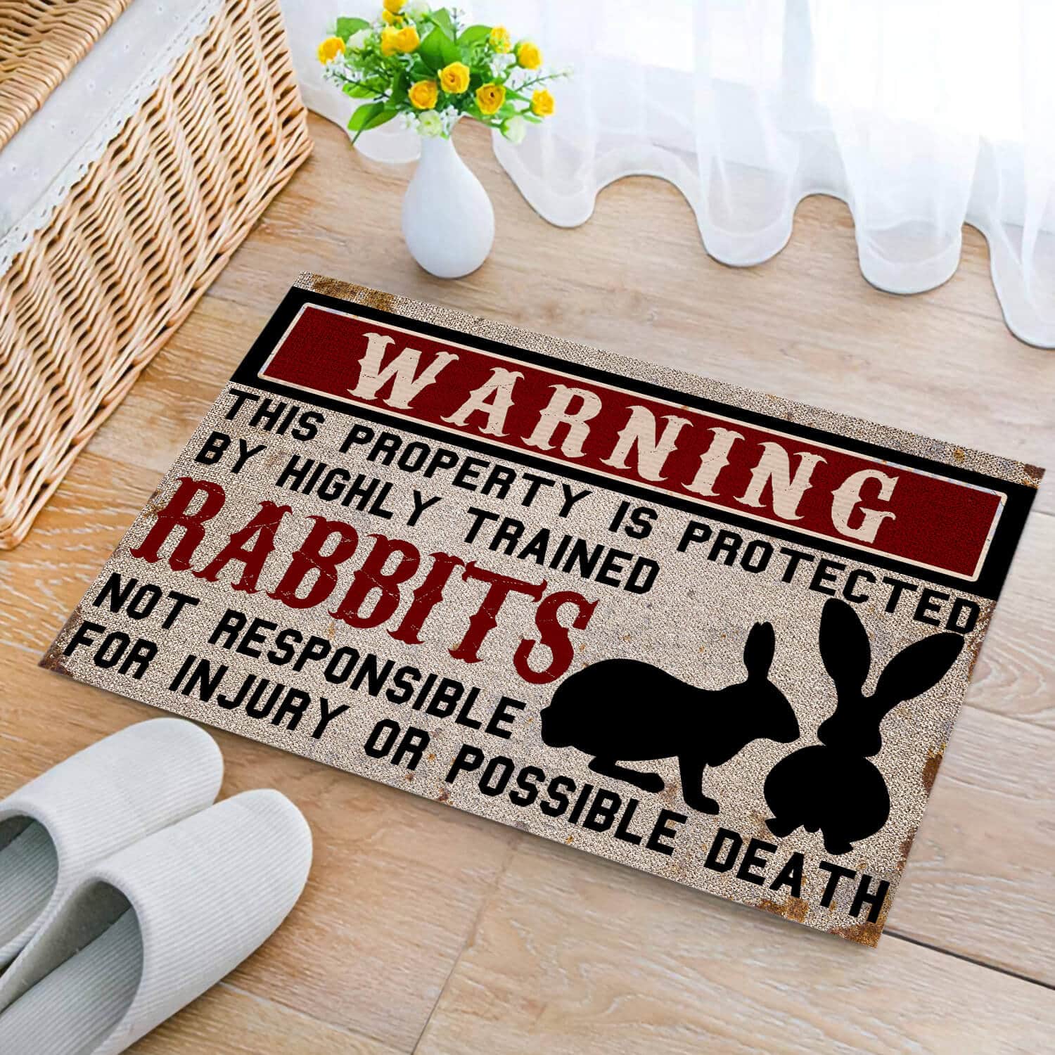 Let’s Shop Warning This Property is Protected by Highly Trained Rabbits Funny Indoor Outdoor Decorative Doormat!