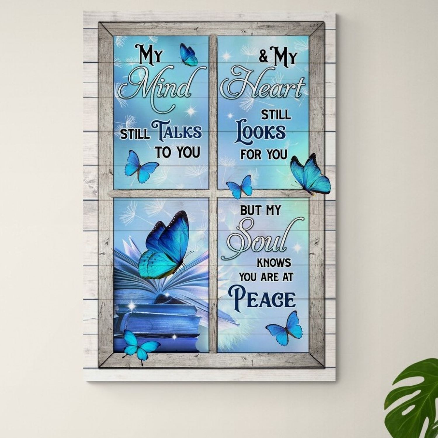 Let’s Shop Butterflies My Mind Still Talks to You My Soul Knows You Are at Peace Framed Canvas Prints – Unframed Poster!