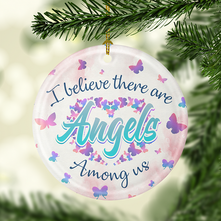 Let’s Shop Butterfly I Believe There Are Angel Among Us Ornament – Memorial Gift Flat Circle Ornament Keepsake!