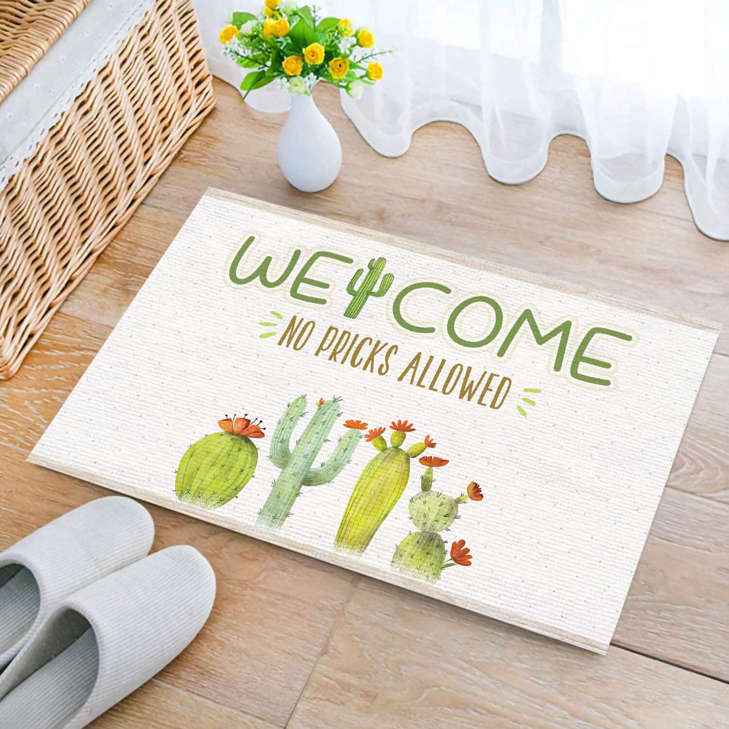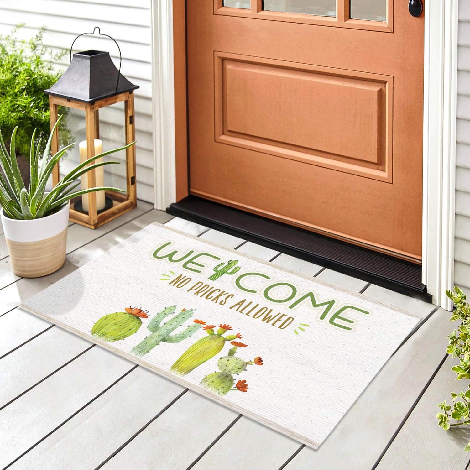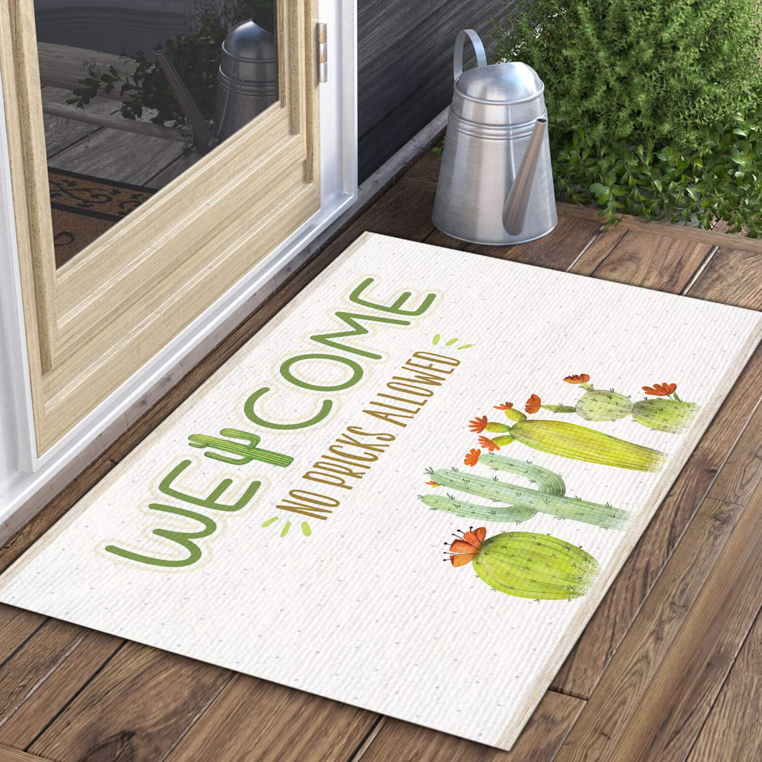 Let’s Shop Cactus Lover Welcome No Pricks Allowed Funny Indoor Outdoor Decorative Doormat!
