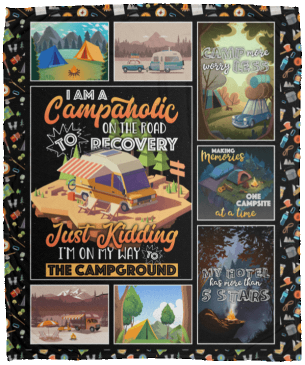 Shop I Am A Campaholic On The Road To Recovery Just Kidding Fleece Blanket – Sherpa Blanket.