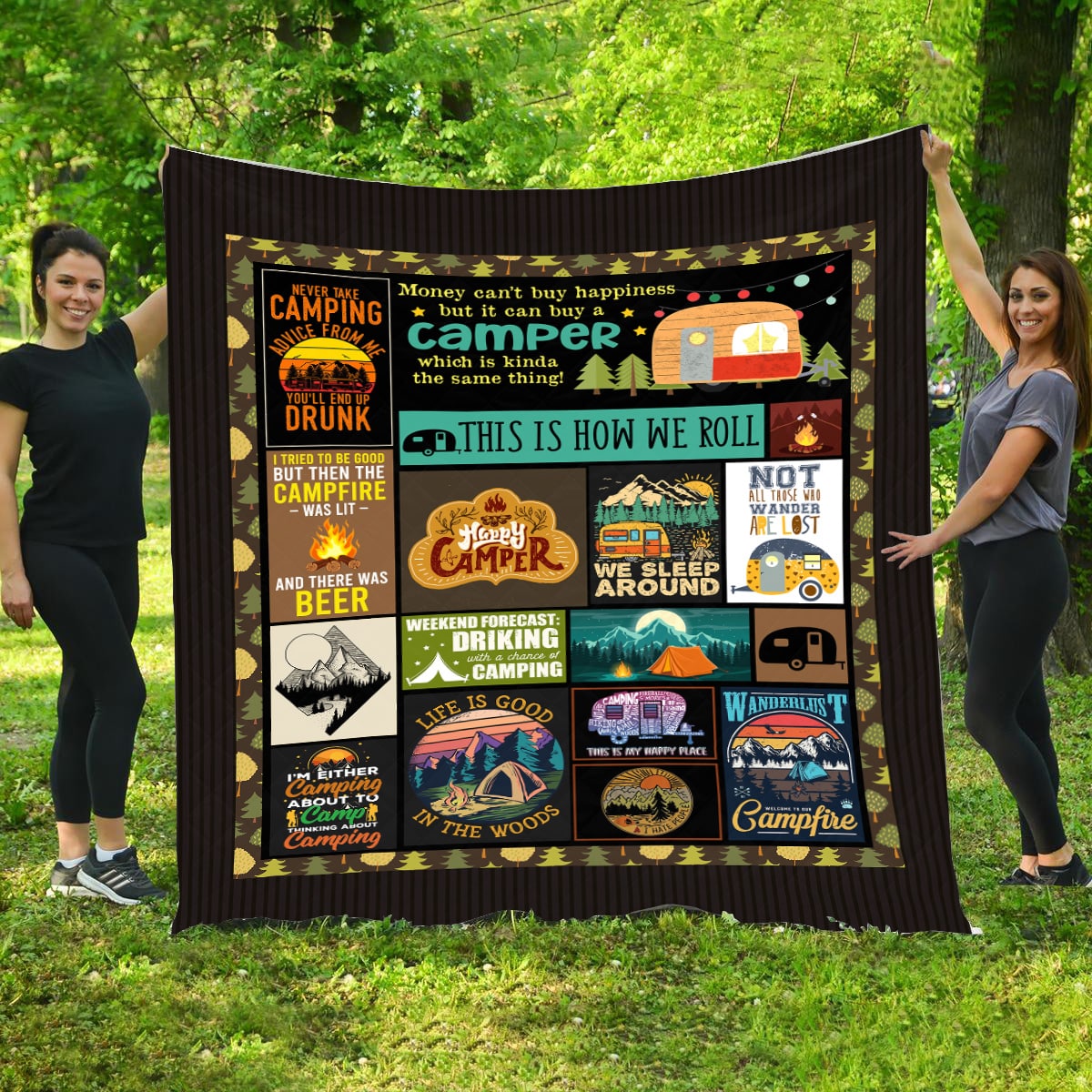 Let’s Shop Money Can’t Buy Happiness But It Can Buy A Camper Camping Fleece Blanket – Mink Blanket – Woven Blanket!