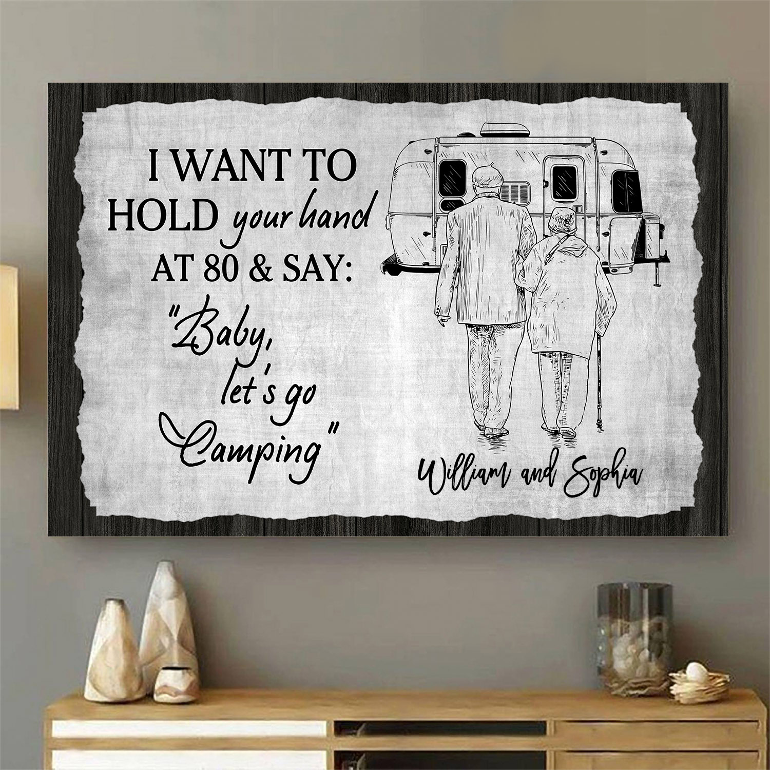 Let’s Shop Personalized I Want To Hold Your Hand At 80 And Say Baby Let’s Go Camping Canvas Prints – Unframed Poster!