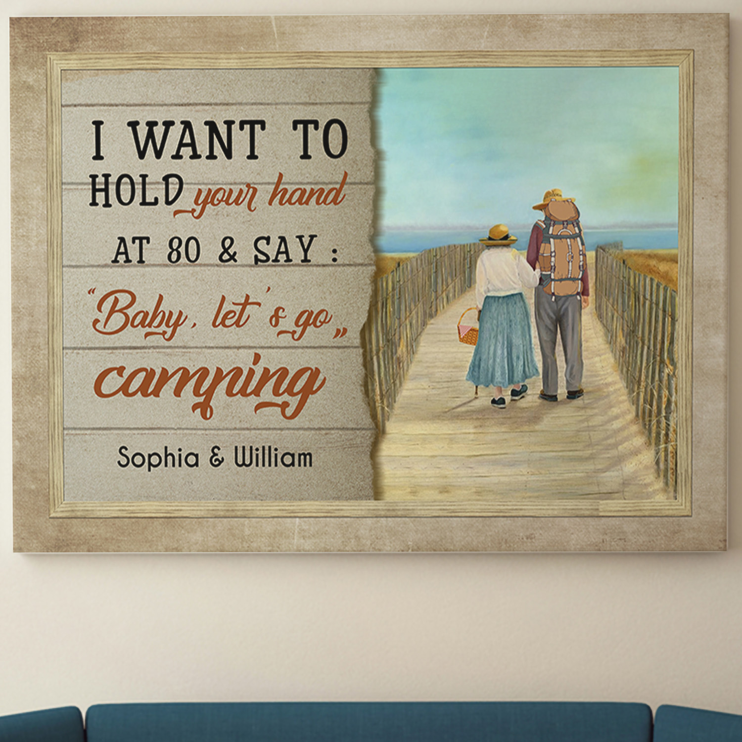 Let’s Shop Personalized I Want To Hold Your Hand At 80 And Say Baby Let’s Go Camping Framed Canvas Prints – Unframed Poster!