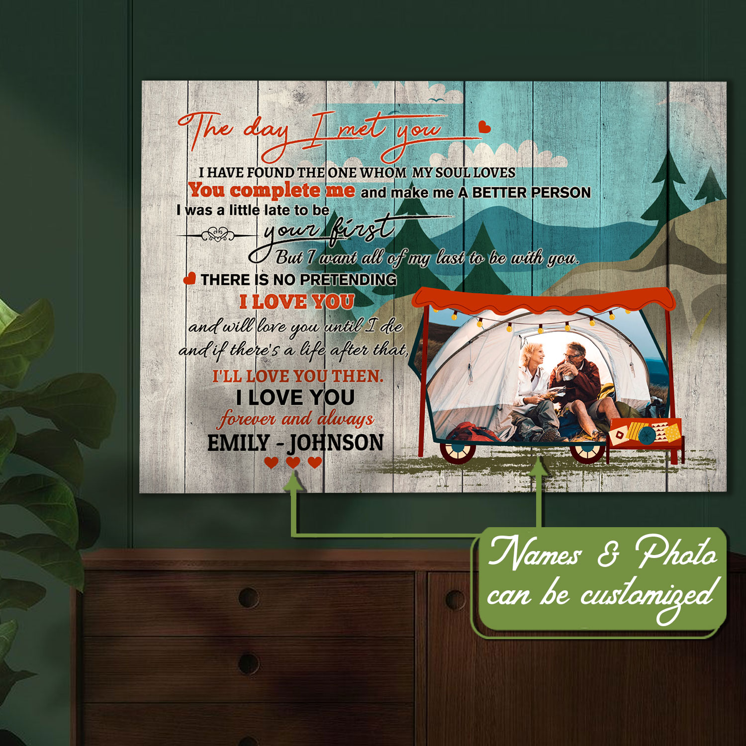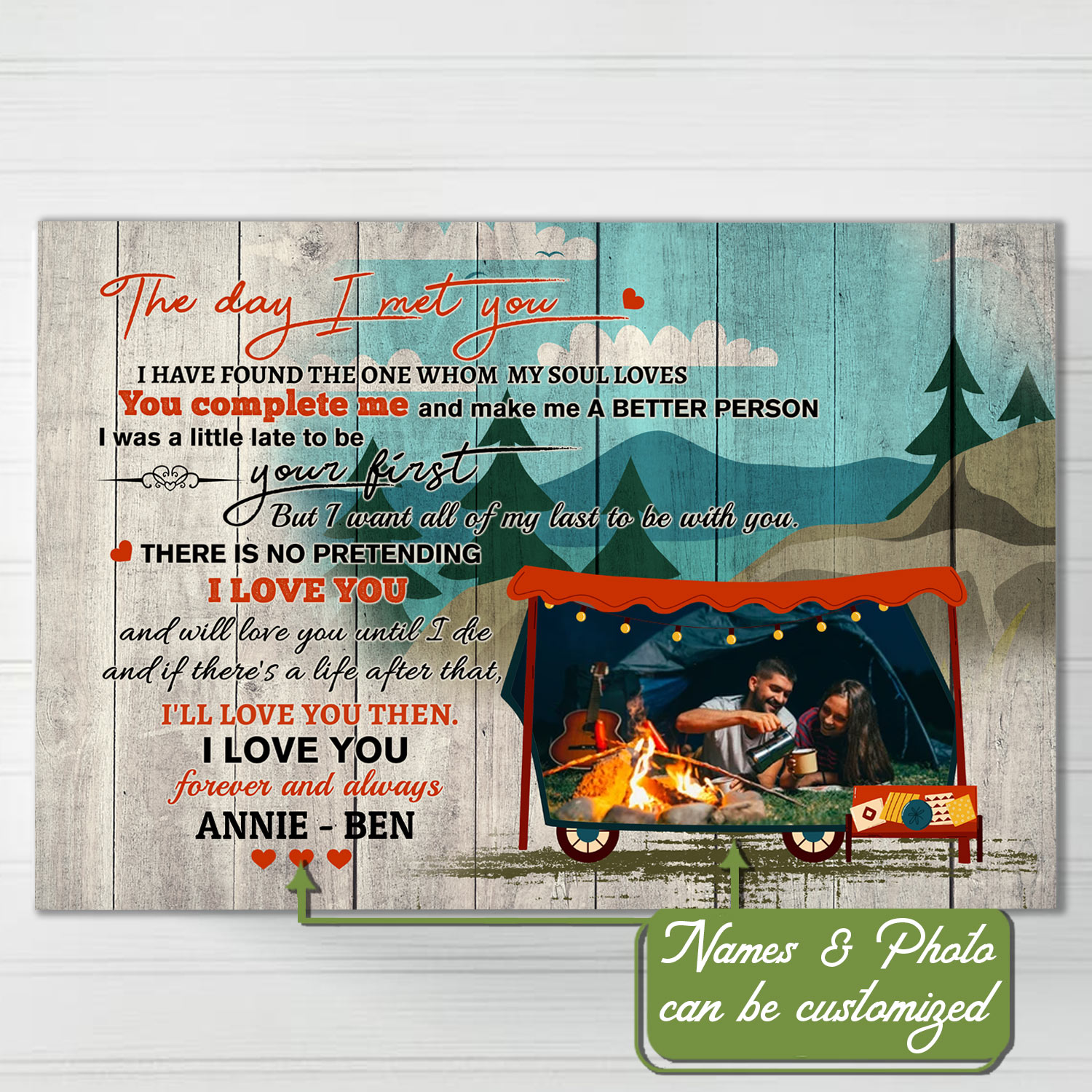 Are you spending too much time to find creative merchandise for you or suitable & special gifts for your mommy, your daddy, your son, your daughter, your children, your friends or someone you love? The struggle is over because we have various Husband and Wife Camping Canvas, Camping Couple Photo Canvas, Camping the Day I Met You Canvas Wall Art, the Day I Met You I Have Found the One Whom My Soul Love, the Day I Met You I Have Found the One Photo Canvas, the Day I Met You I Found the One Whom My Soul Loves Canvas Camping, the Day I Met You I Have Found the One Whom My Soul Loves You Complete Me Wall Art, Husband and Wife Camping Poster, Camping Gifts for Couples which will make perfect presents for your beloveds. In order to make your present stand out, we have created lots of unique and awesome customized photo gifts & personalized designs.