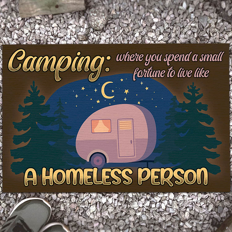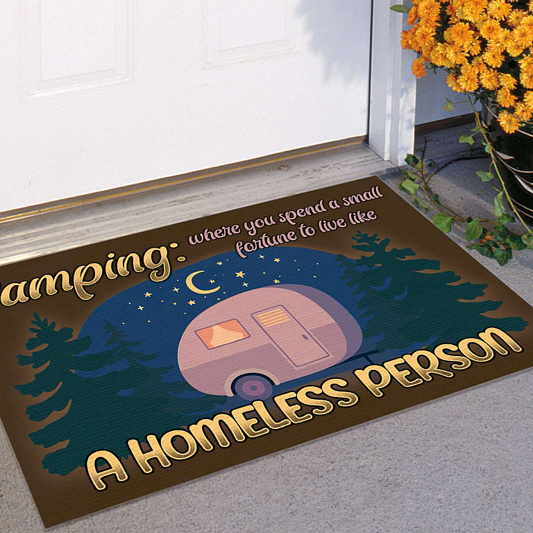 Let’s Shop Camping Where You Spend a Small Fortune to Live Like a Homeless Person Entrance Outdoor Decorative Doormat!