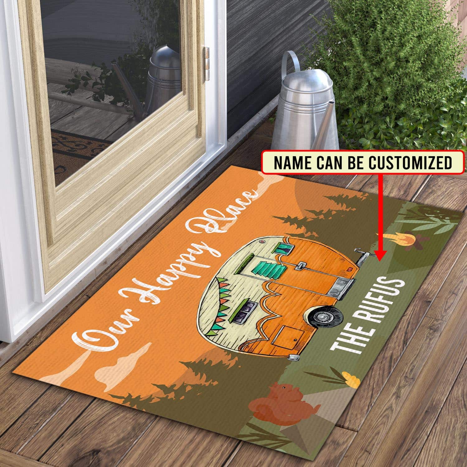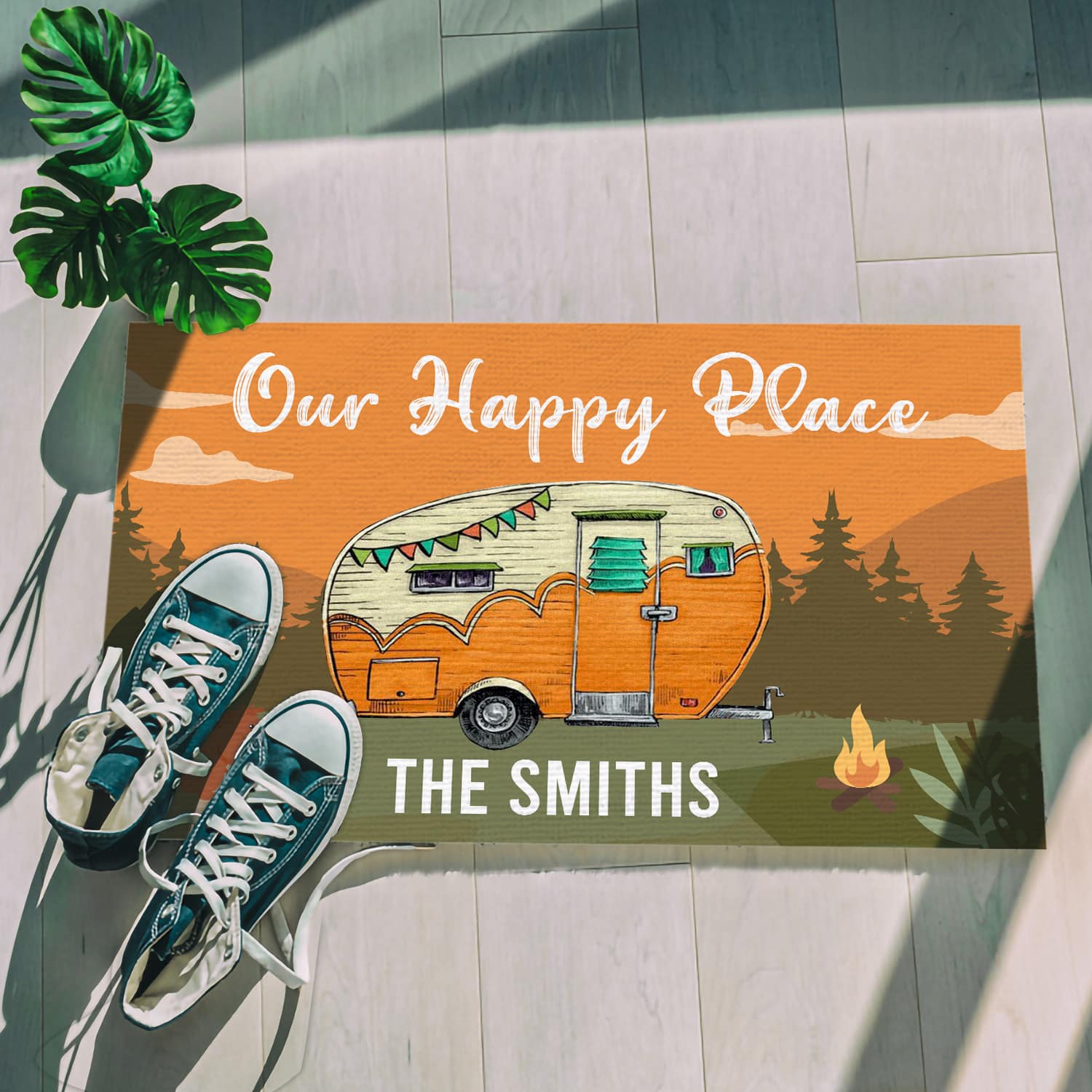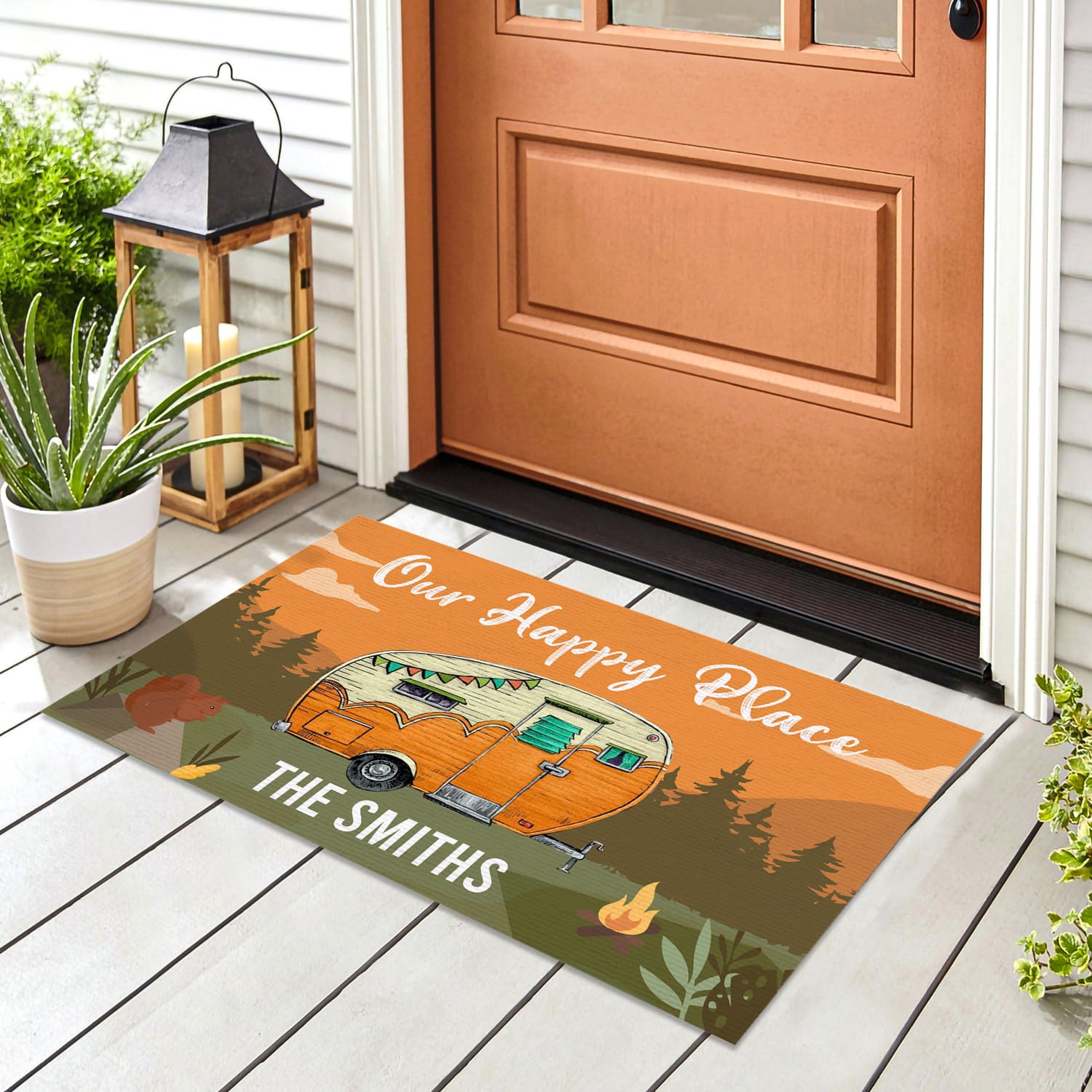 Let’s Shop Personalized Camper Indoor Outdoor Doormat – Our Happy Place Doormat – Camping Lover Gifts!
