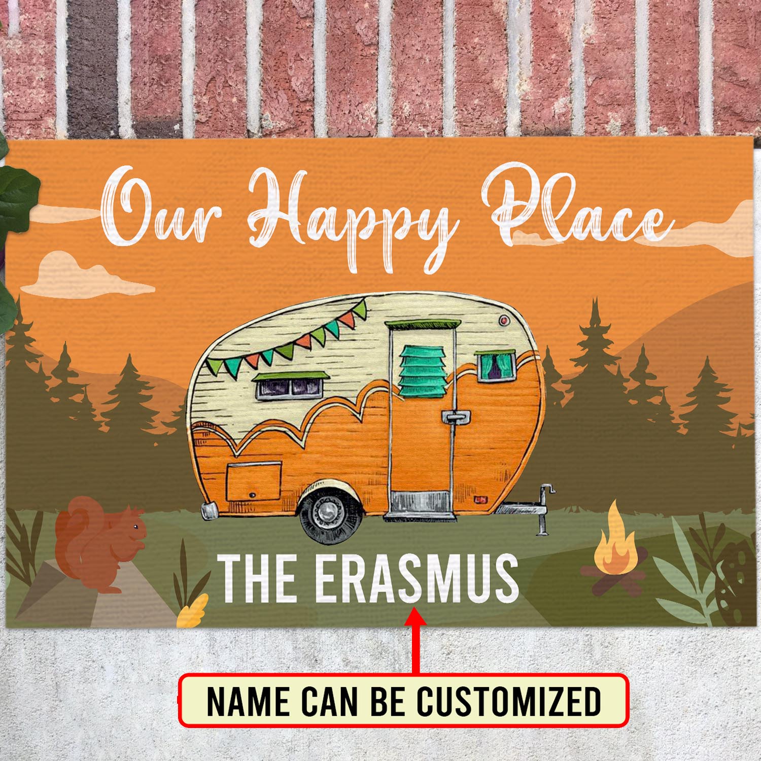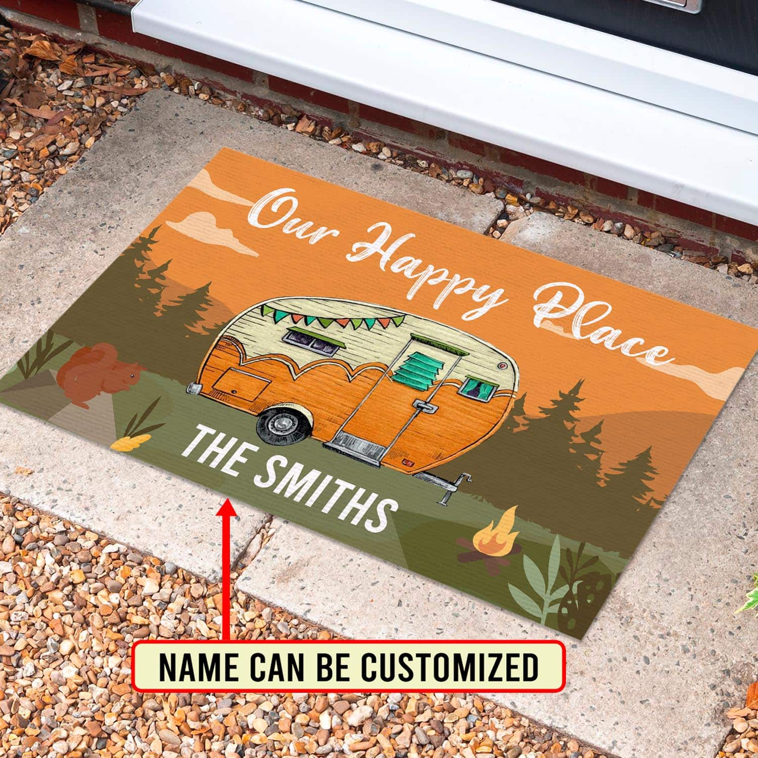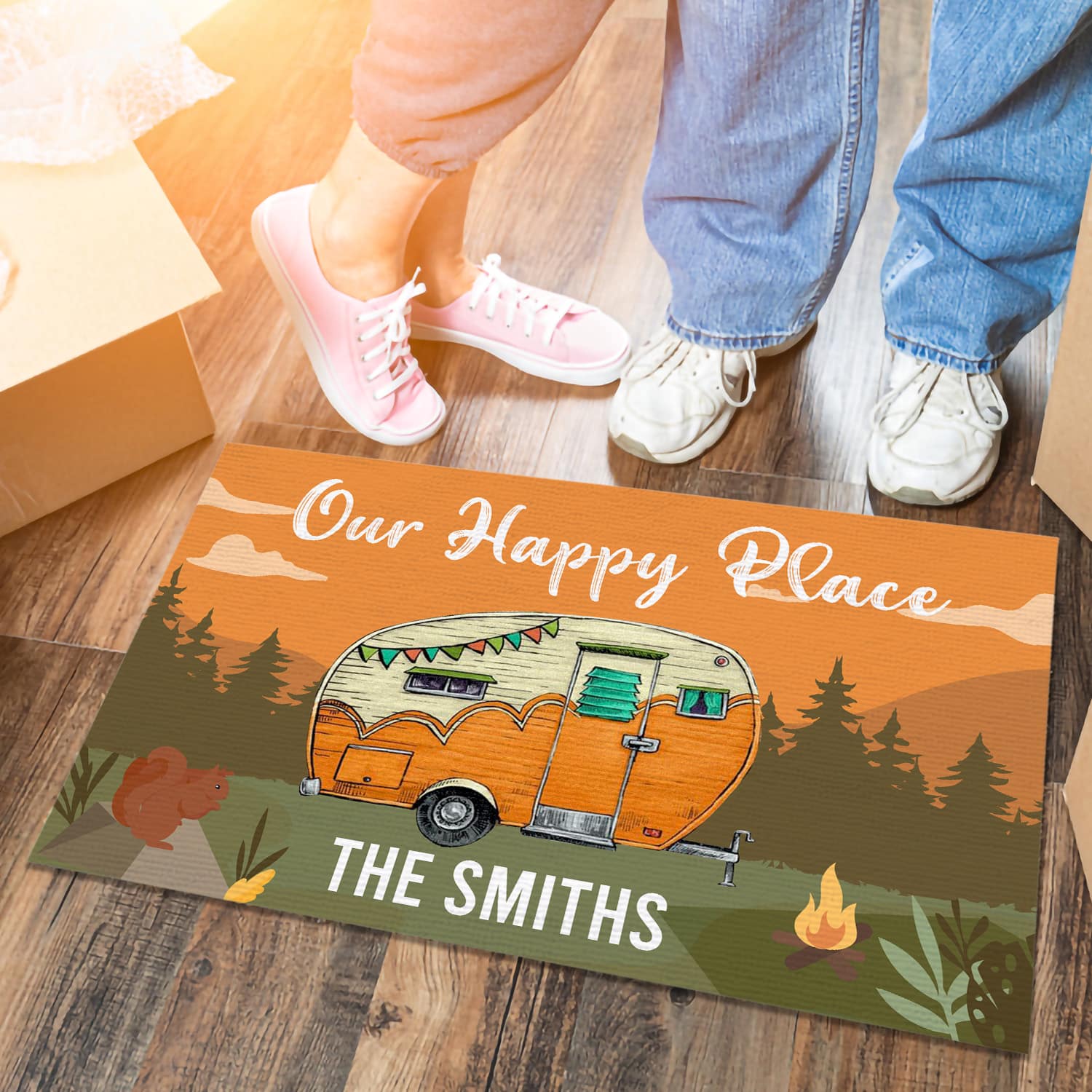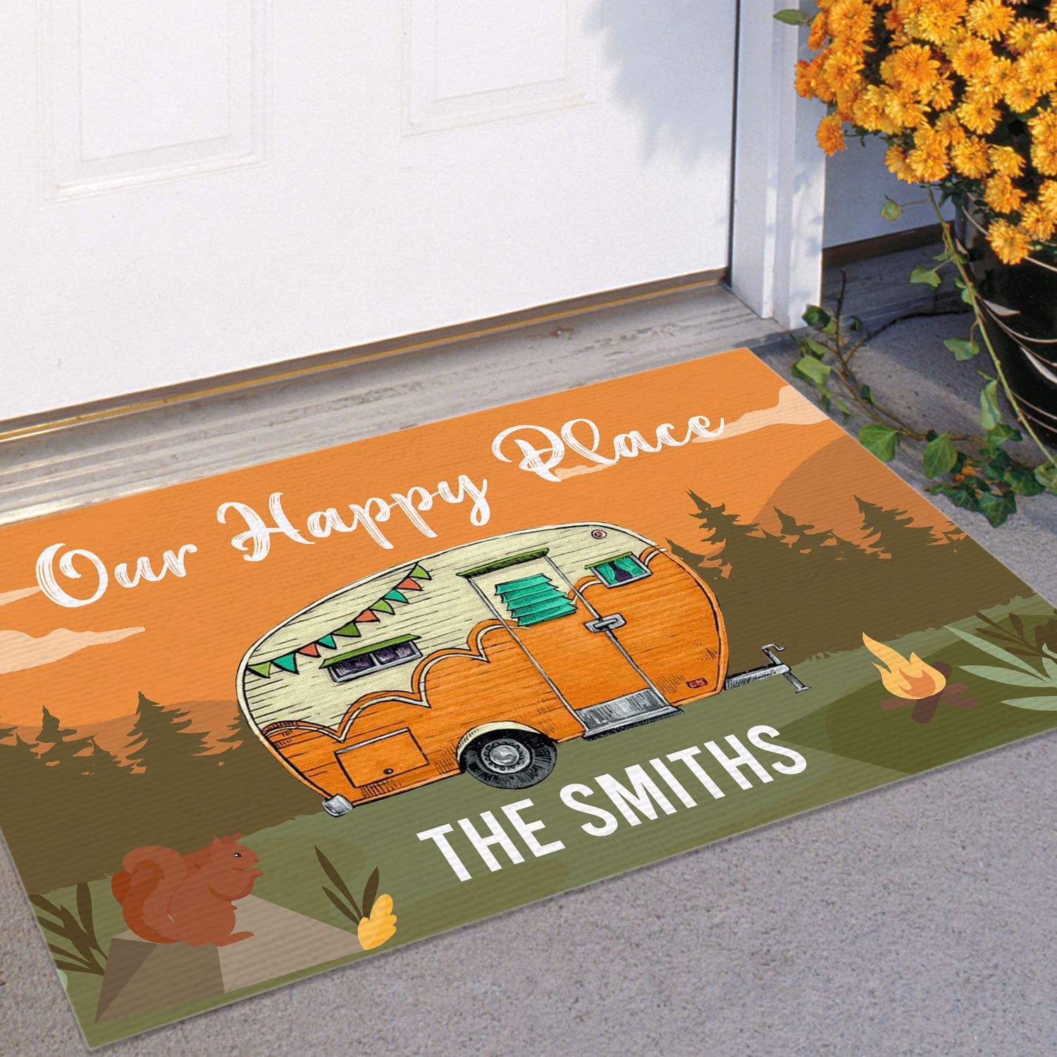 Let’s Shop Personalized Camper Indoor Outdoor Doormat – Our Happy Place Doormat – Camping Lover Gifts!