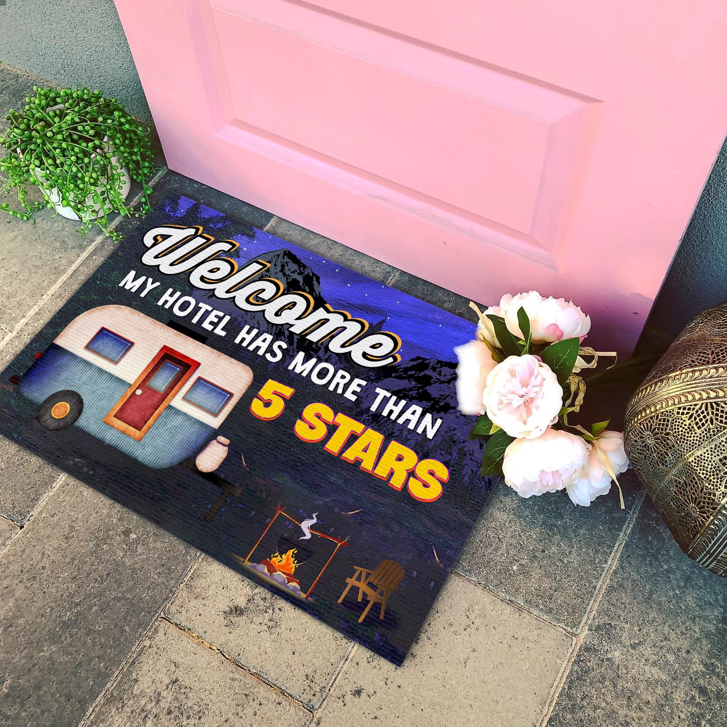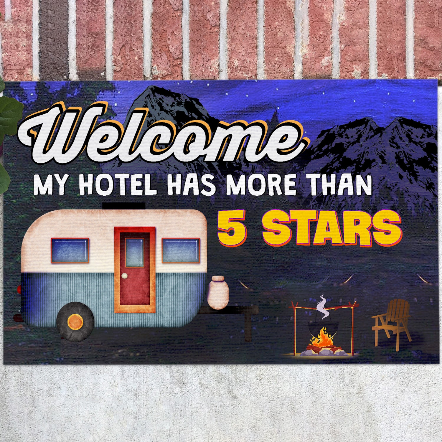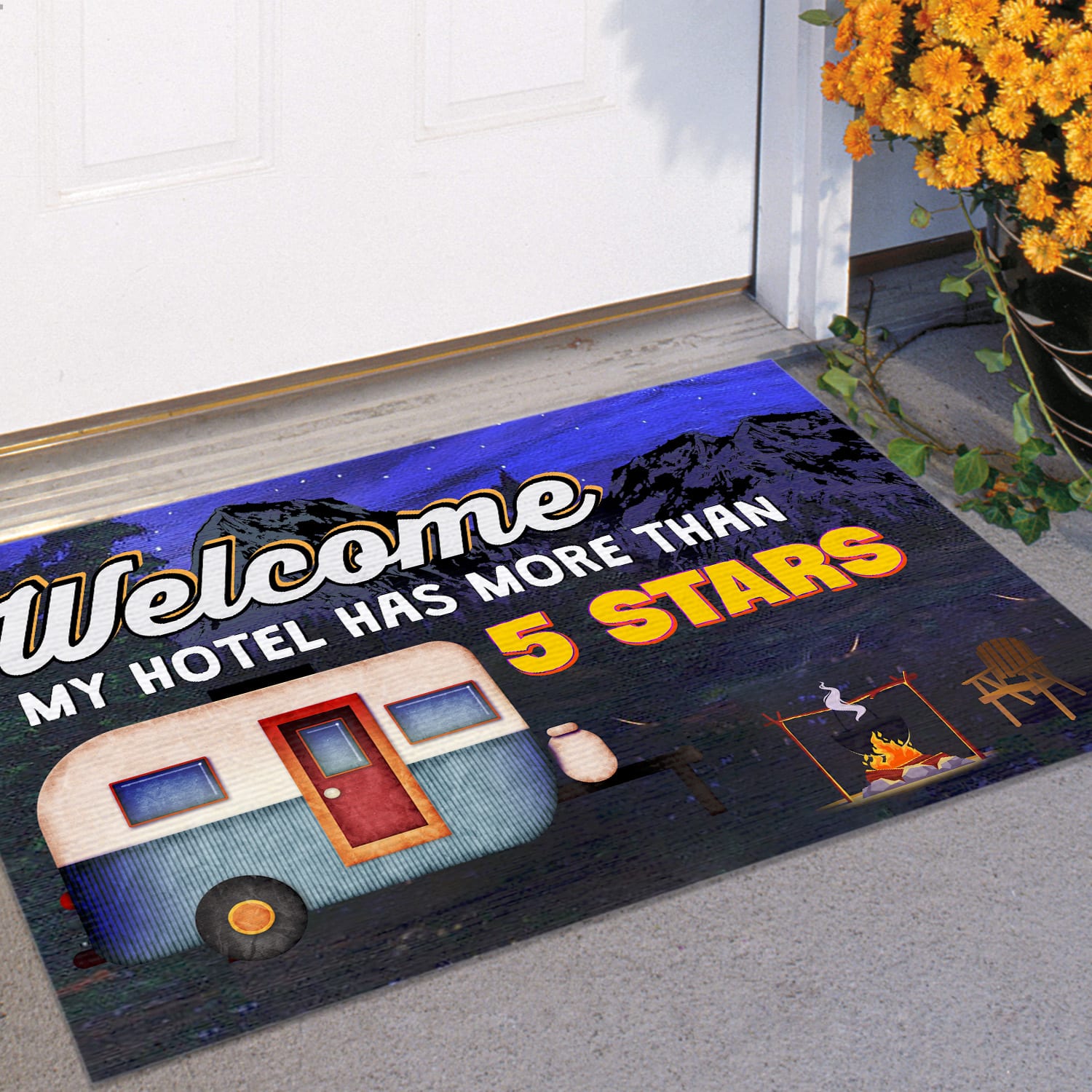 Let’s Shop Welcome My Hotel Has More Than 5 Stars Camper Doormat – Outdoor Indoor Doormat – Funny Camping Doormat!