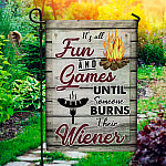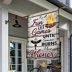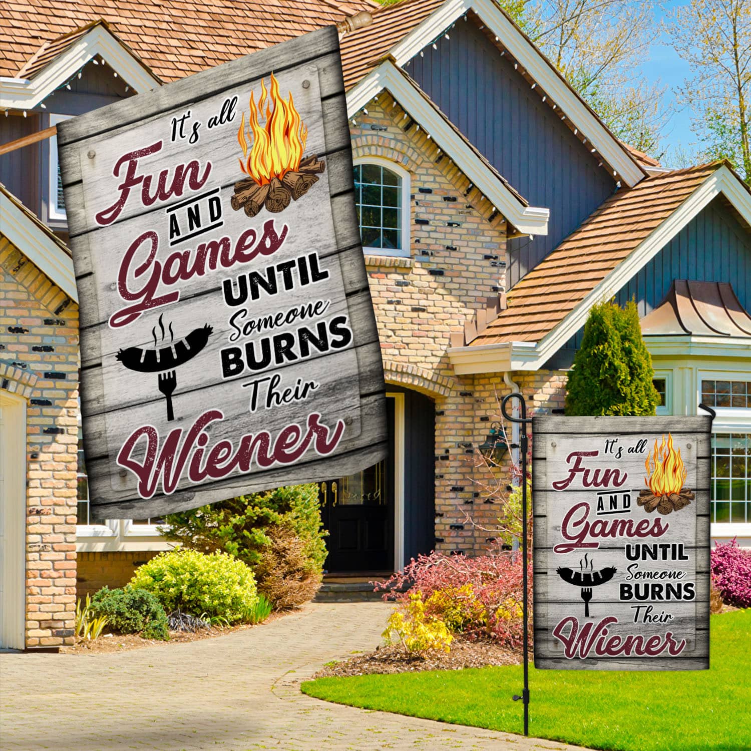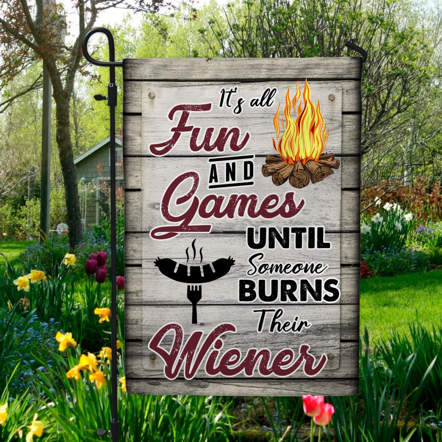 Let’s Shop It’s All Fun And Games Until Someone Burns Their Wiener Outdoor Garden Flag – House Flag – Camping Flag!