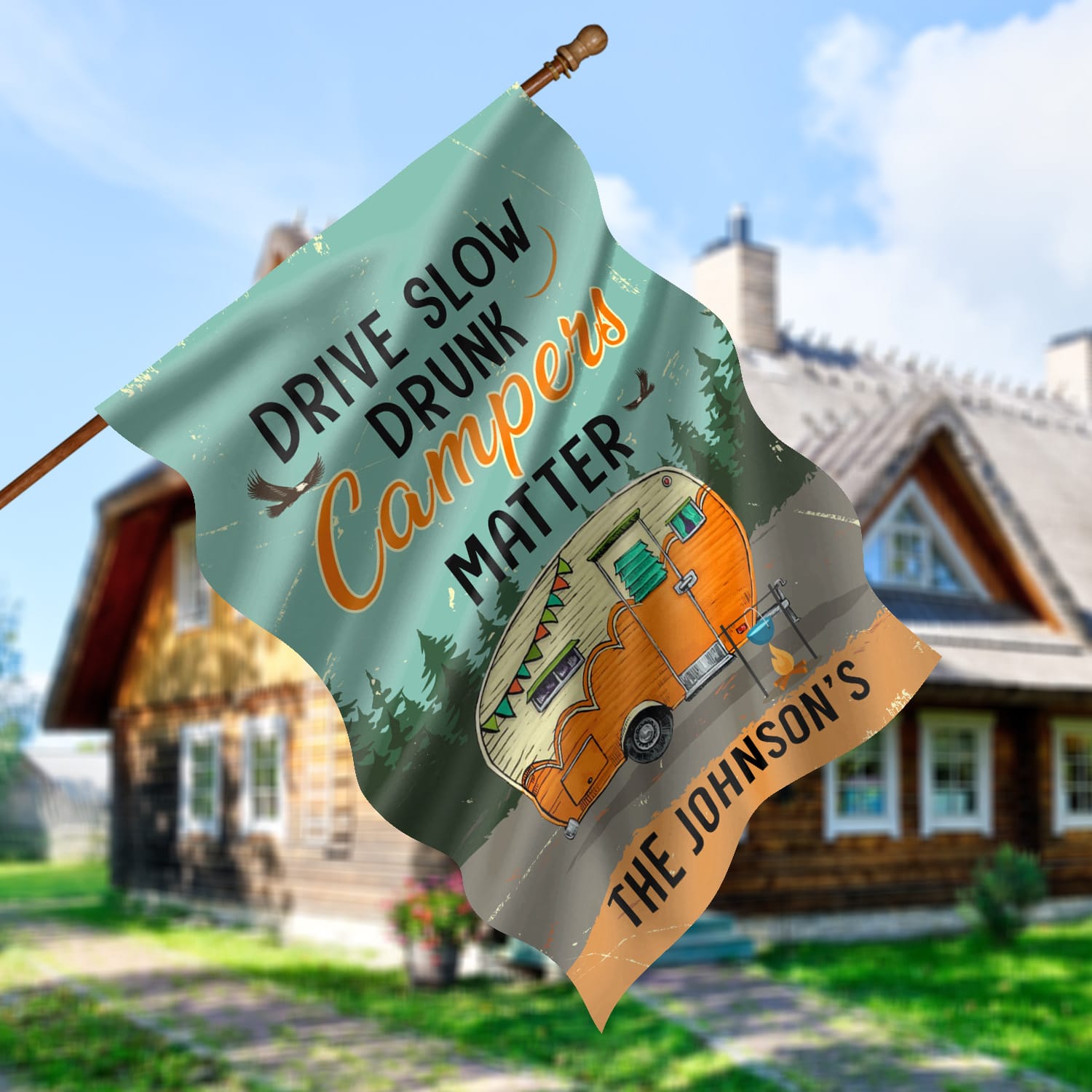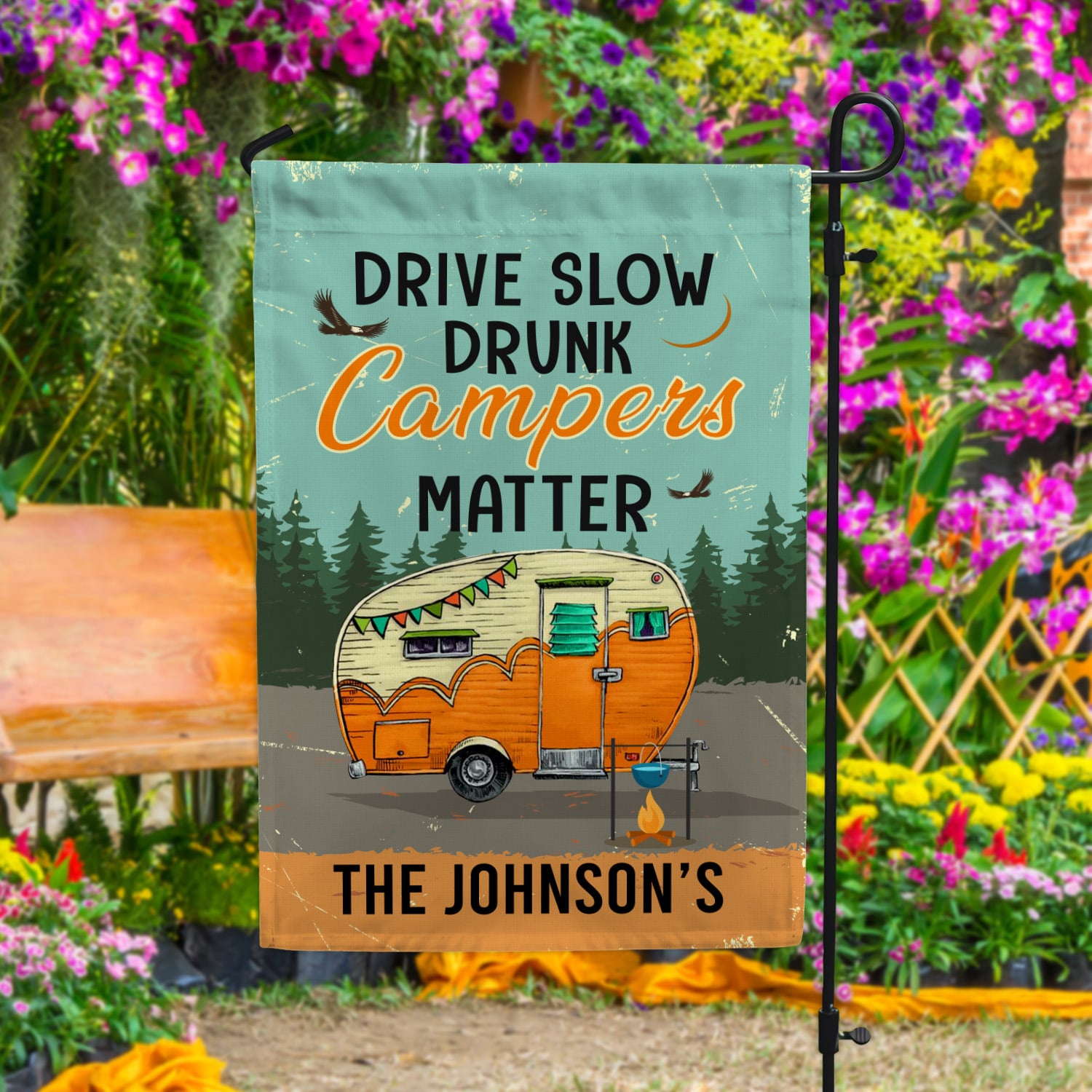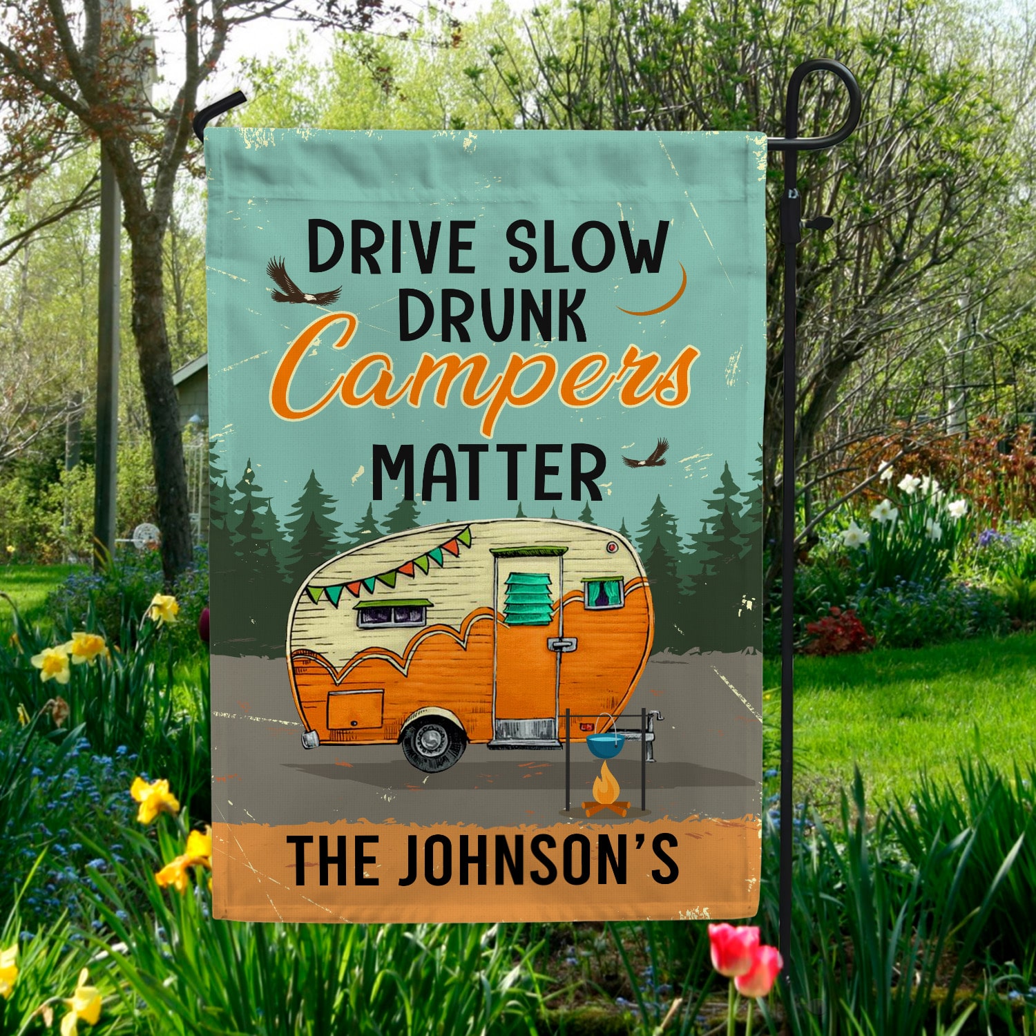 Let’s Shop Personalized Drive Slow Drunk Campers Matter Decorative Garden Flag – House Flag – Drunk Campers Matter Flag!