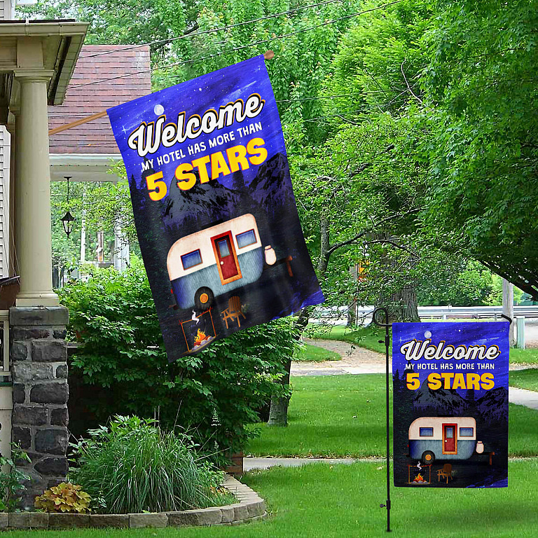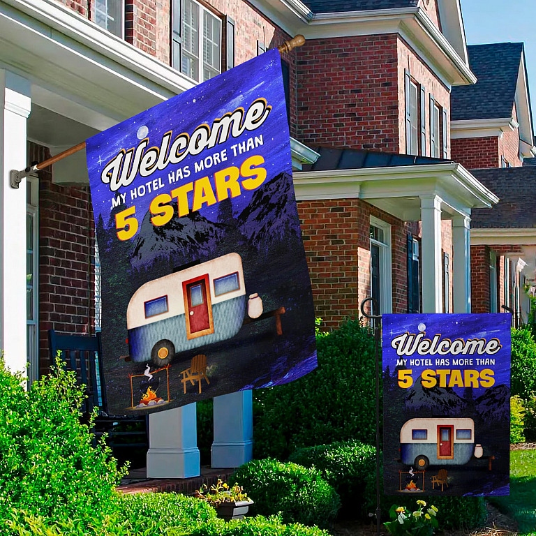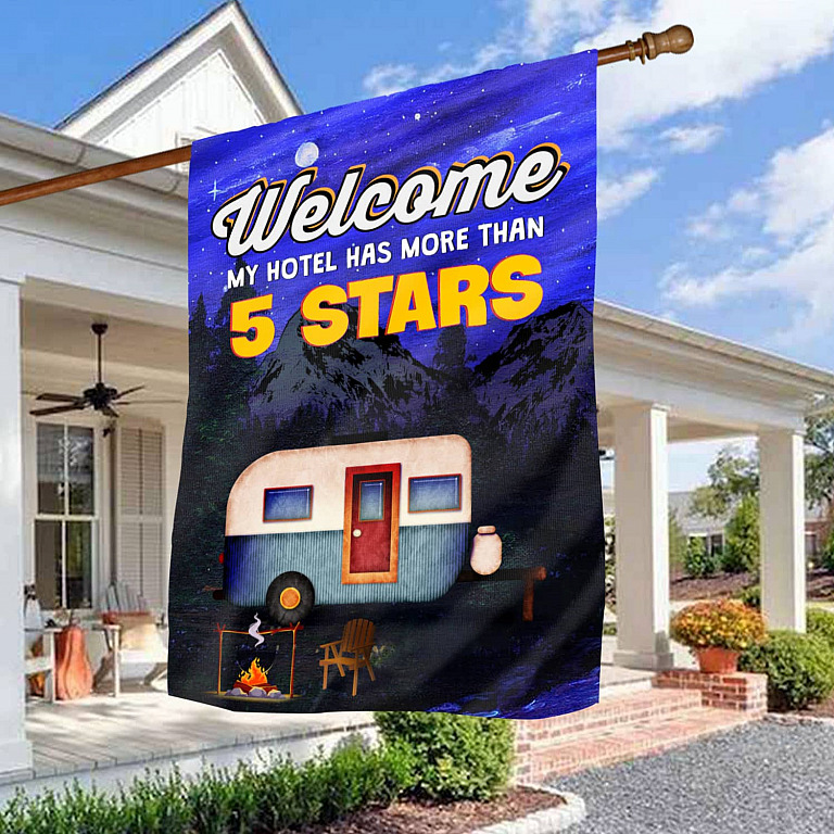 Let’s Shop Welcome My Hotel Has More Than 5 Stars Camper Decorative Garden Flag – Indoor Outdoor Flag – House Flag – Funny Camping Flag!