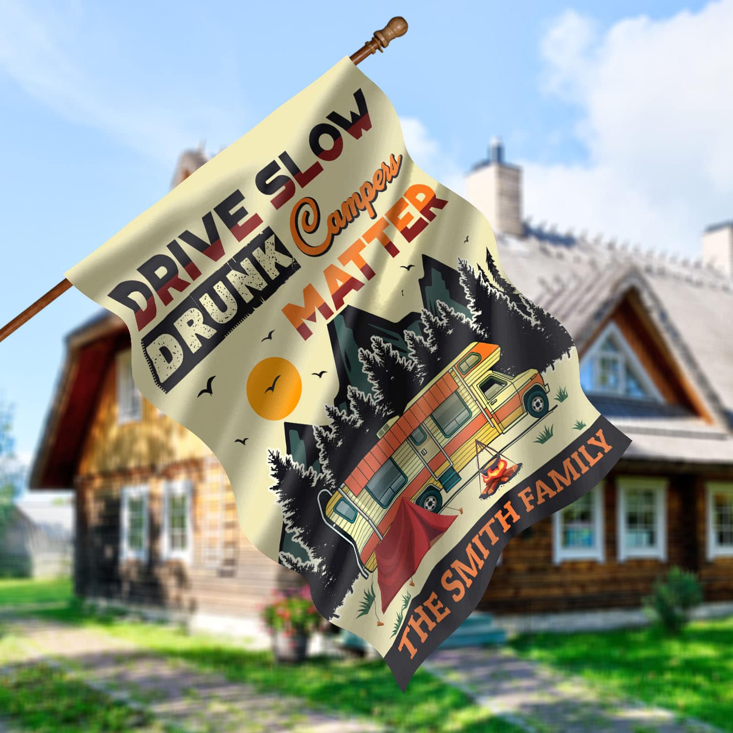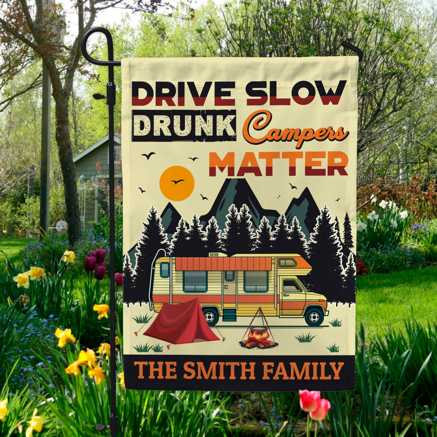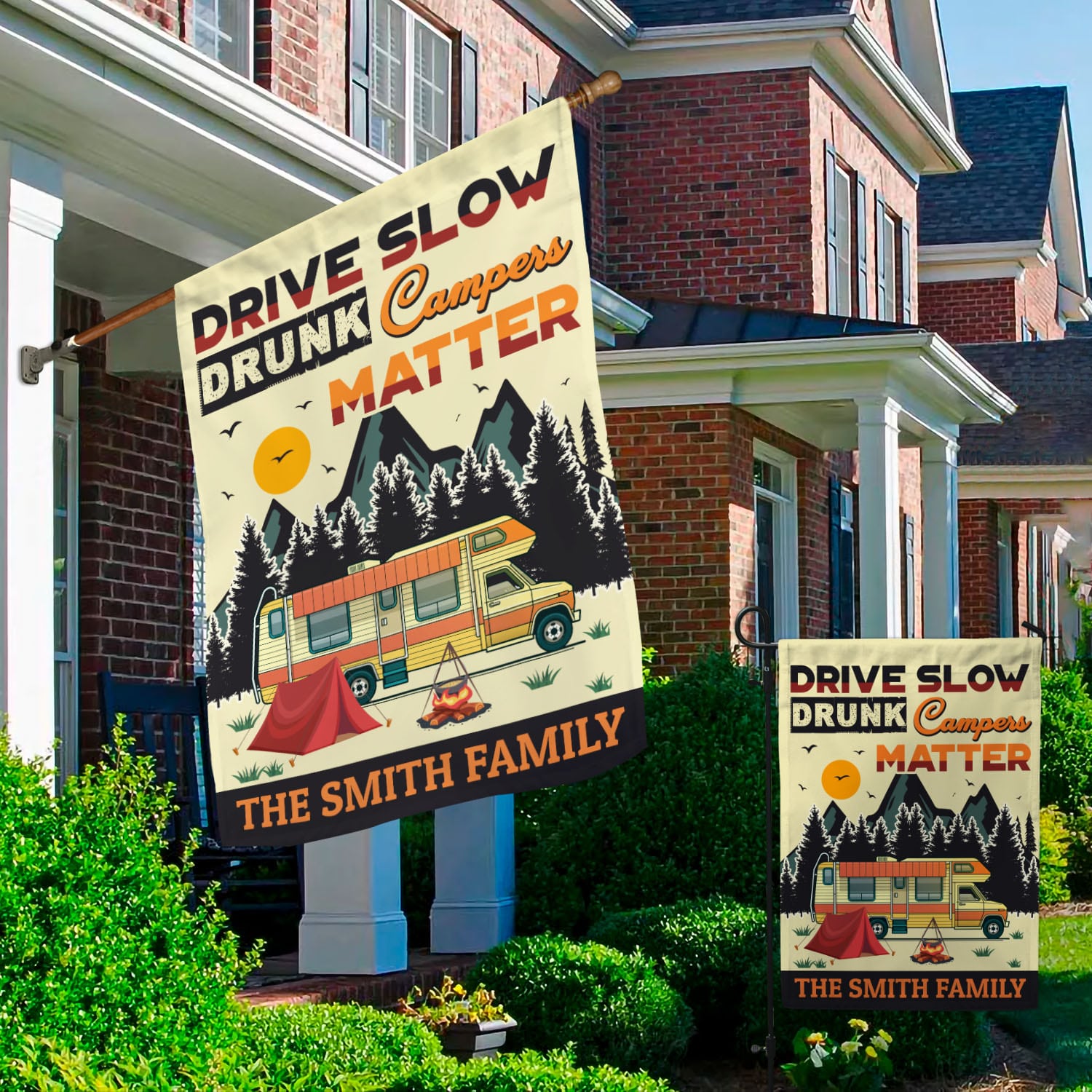 Let’s Shop Personalized Camping Flags – Drive Slow Drunk Campers Matters Outdoor Decorative Garden Flag – House Flag!