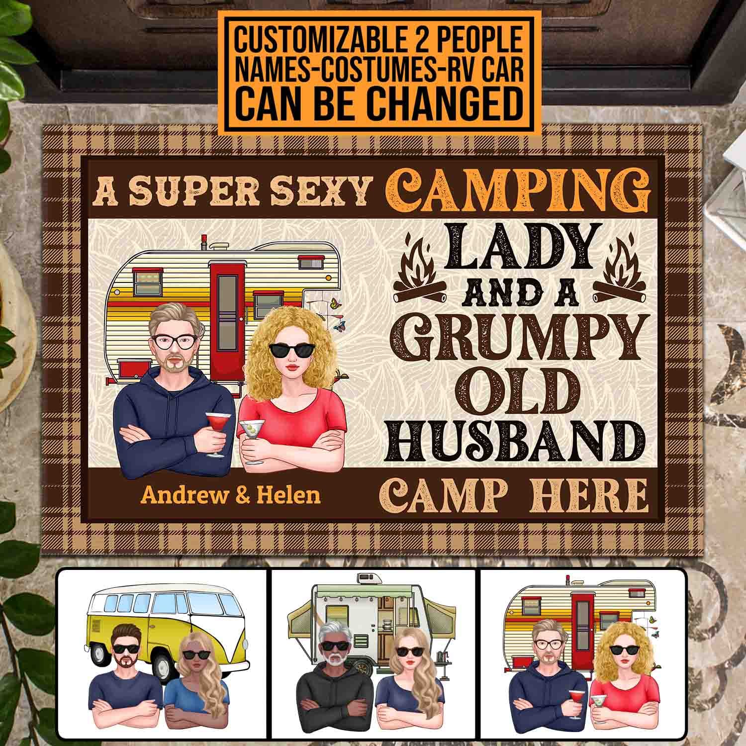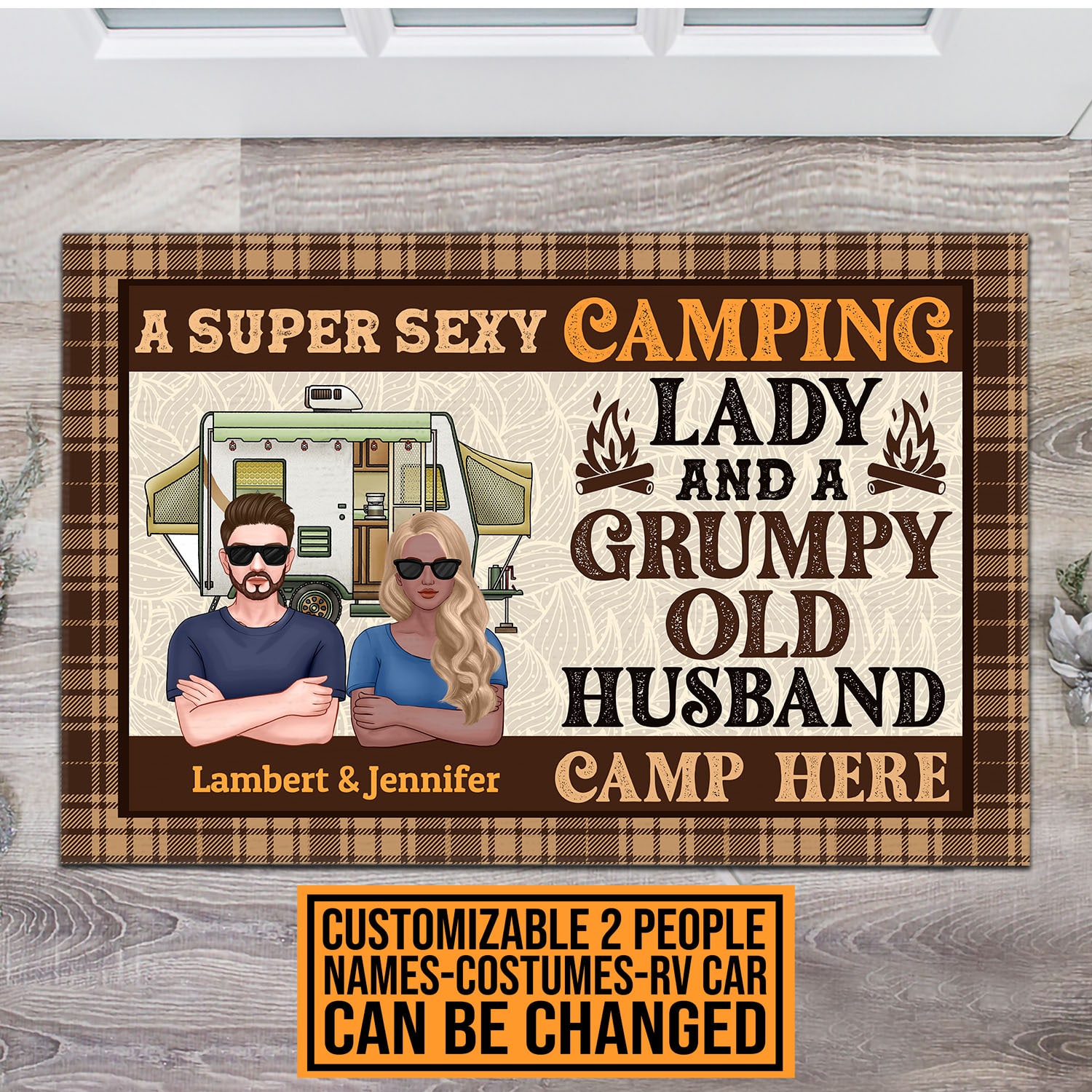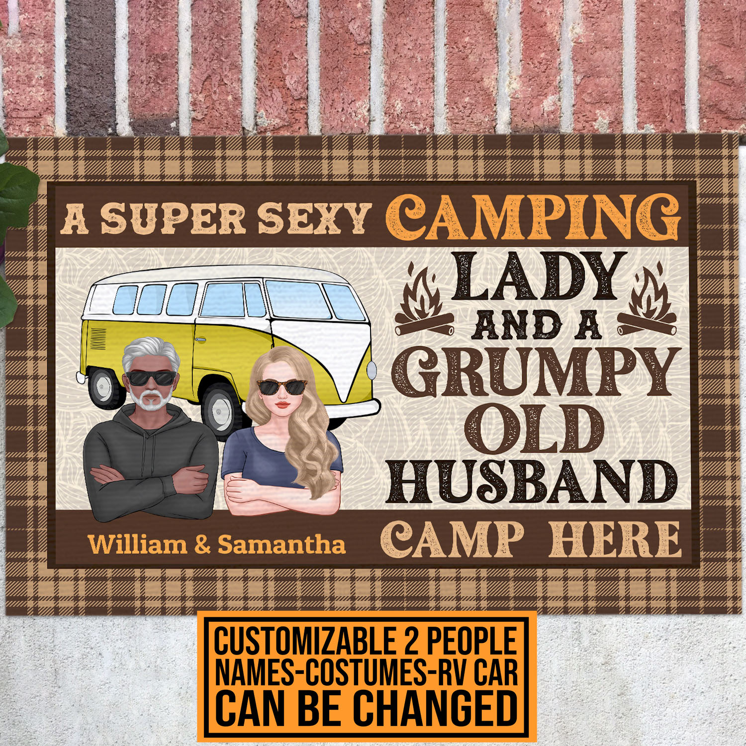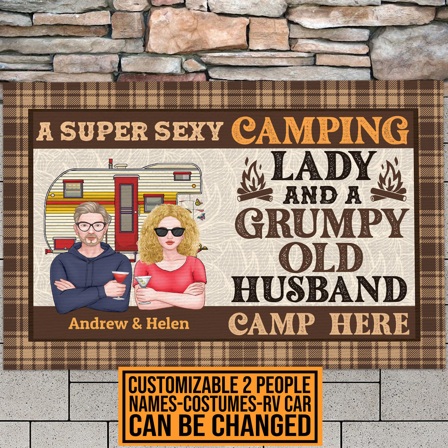 Let’s Shop Personalized Couple A Super Sexy Camping Lady And A Grumpy Old Man Camp Here House Doormat – Outdoor Doormat!