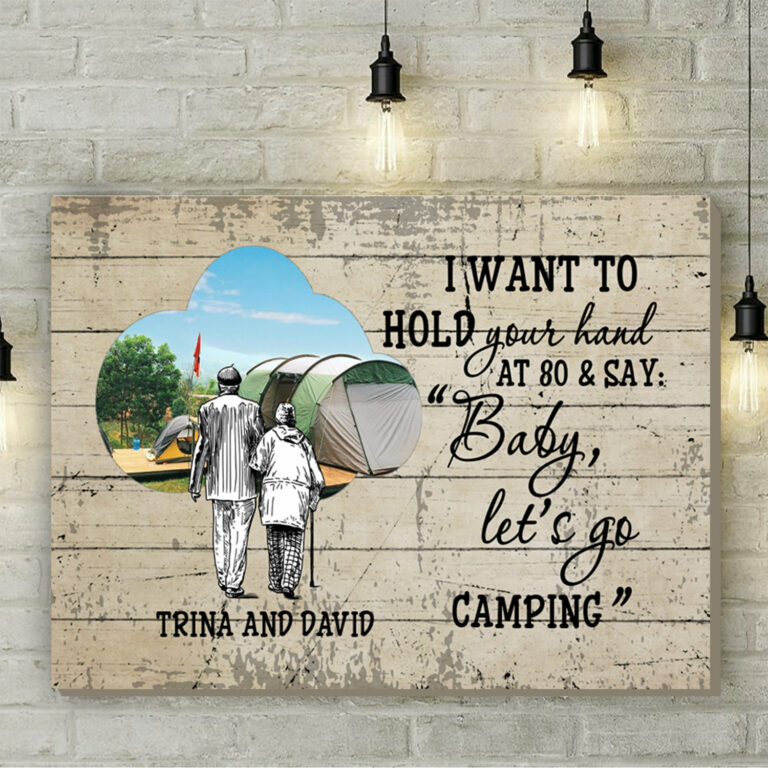 Let’s Shop Personalized Photo I Want Hold Your Hand At 80 Let’s Go Camping Partner Couple Customized Image Canvas Poster!