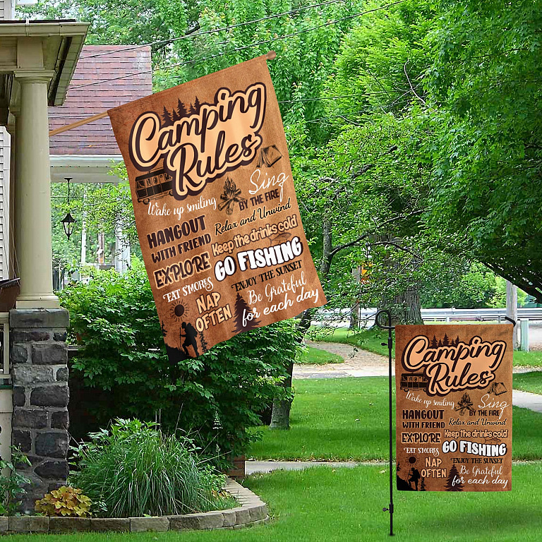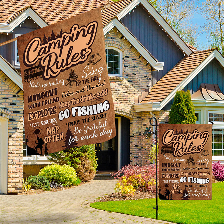 At CubeBik, besides custom flags, we also offer tees, hoodies, sweaters, raglans, tanks, wall arts, canvases, posters, mugs, blankets, engraved jewelry, personalized necklaces, printed face masks, throw pillows, tote bags, hats, accessories and more on our website, so do not miss our other Camping Rules Sign, Camping Rules Wall Art, Camping Rules Doormat, Camping Rules Wall Decal, Camping Rules Signs for Campers, Camping Rules Mat, Camping Rules Blanket, Camp Rules Decor, Camping Yard Flag, Camping Doormats for Outdoor Entrance, Camping Gifts for Camper, Camping Rules Flag, Camping Flag, Camping Rules Garden Flag, Happy Camper Garden Flag, Camper Flags, Funny Camping Flags related merchandise. Moreover, all the products are made-to-order and one of a kind custom designs you can’t get elsewhere in normal stores. Let’s discover CubeBik.com now and find your favorite personalized items. We can’t wait to surprise and build beautiful memories with you and your loved ones.