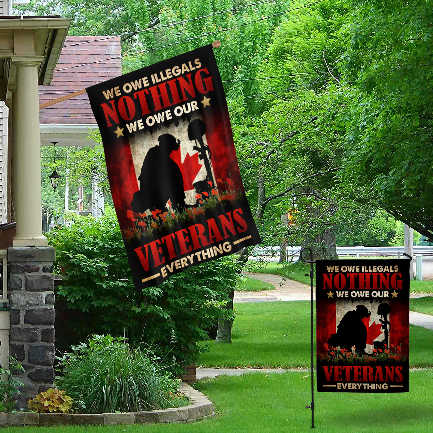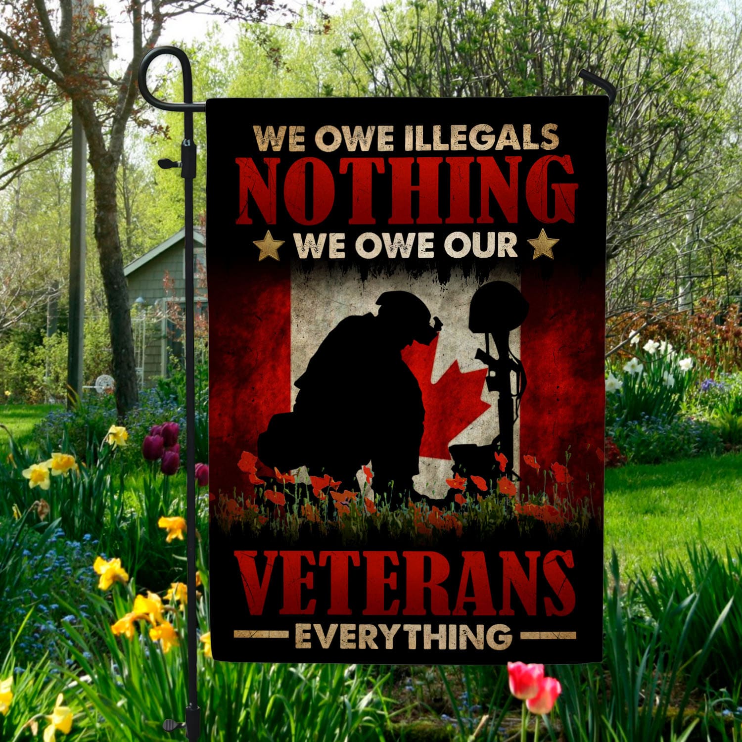 Let’s Shop Canada Veteran Flag We Owe Illegals Nothing We Owe Our Veterans Everything Outdoor Indoor Decorative Garden Flag – House Flag – Wall Flag!