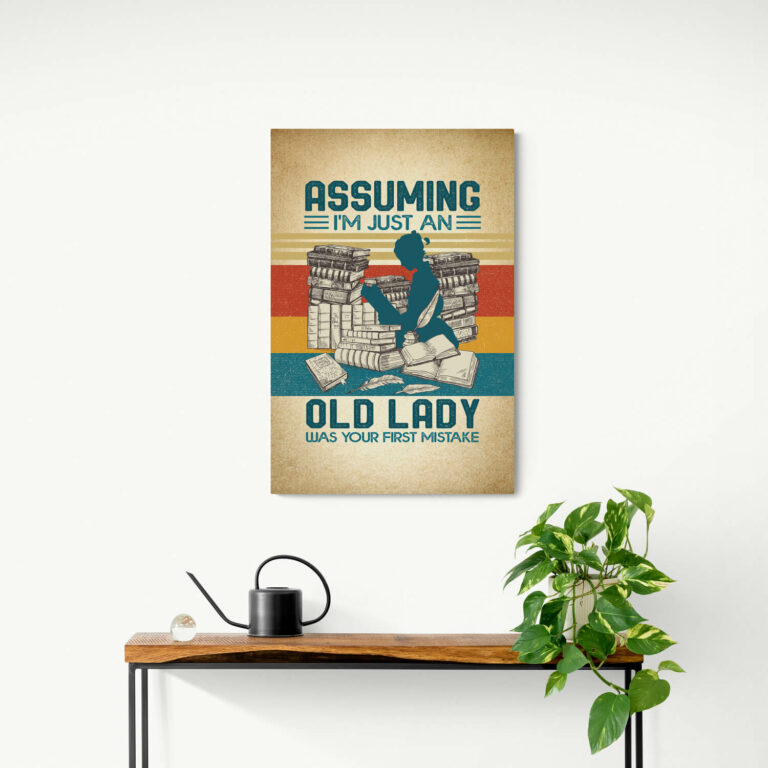 Let’s Shop Assuming I’m Just An Old Lady Was Your First Mistake Framed Canvas Prints – Girl Loves Books Unframed Poster!