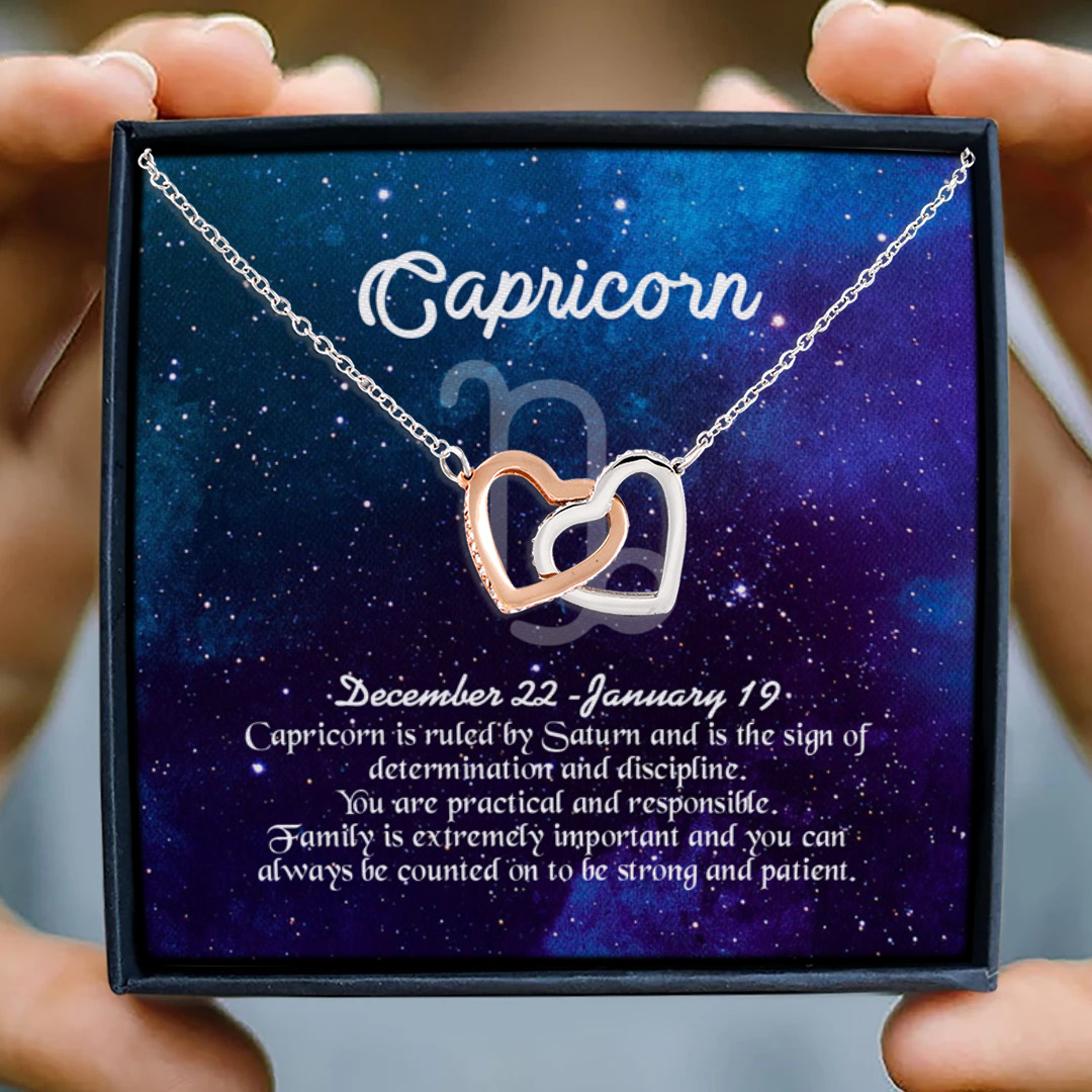Let’s Shop Capricorn Sign Constellation Horoscope Zodiac Birthday Astrology Joined Interlocking Hearts Pendant Necklace!