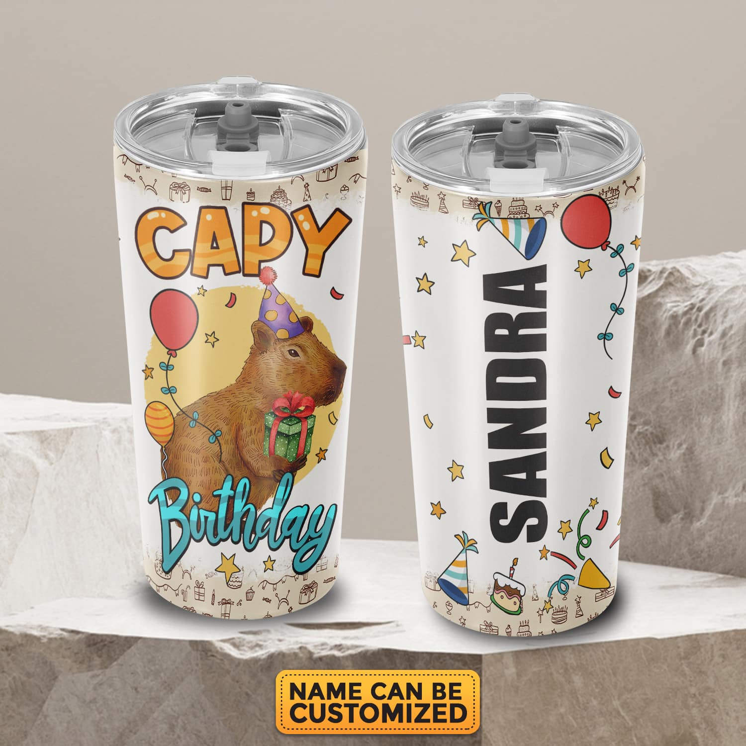 Let’s Shop Personalized Capy Birthday – Funny Happy Birthday Capybara Insulated Tumbler Cup With Lid And Straw!