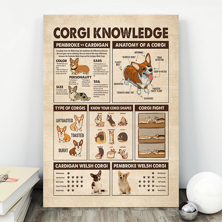 Shop Corgi Knowledge Anatomy Framed Canvas Print – Unframed Poster – Corgi Lovers Canvas.
