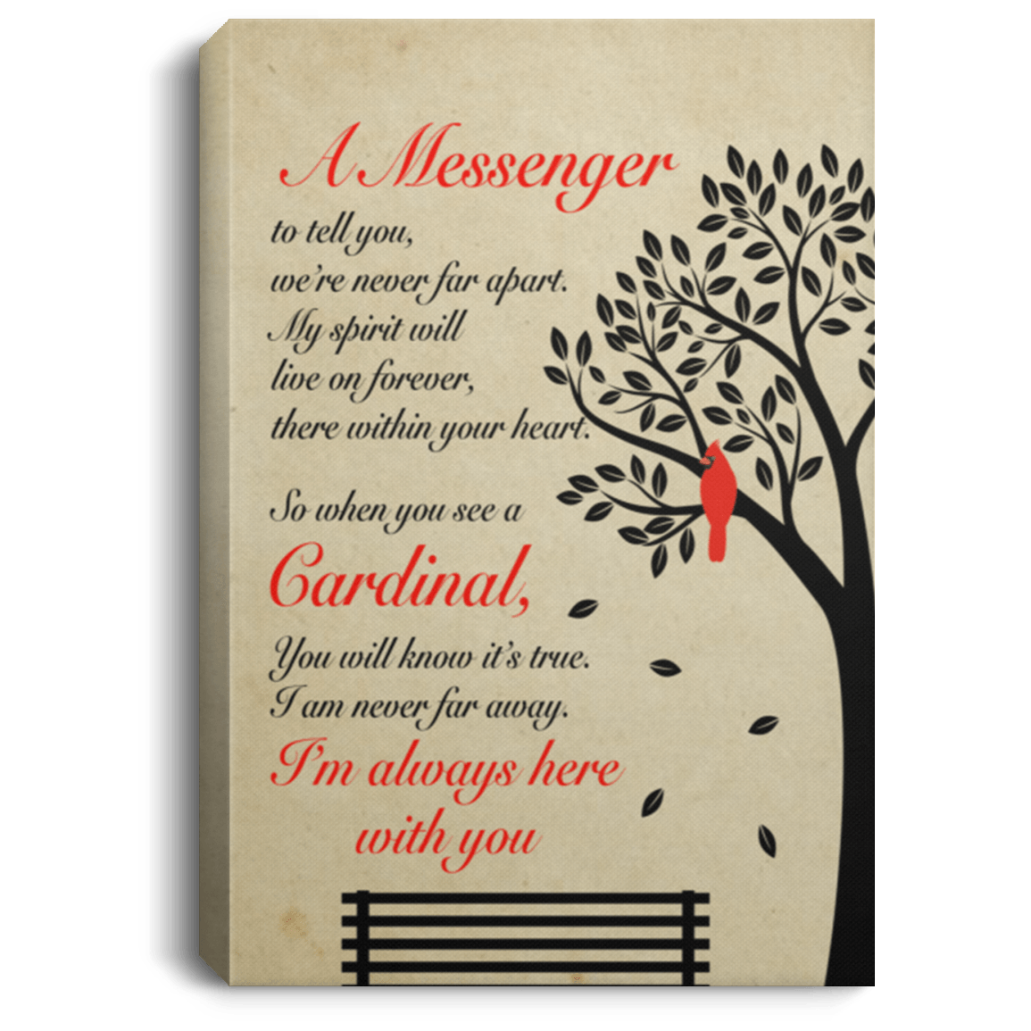 Shop Cardinal Red Bird A Messenger To Tell You We’re Never Far Apart Framed Canvas – Unframed Poster.