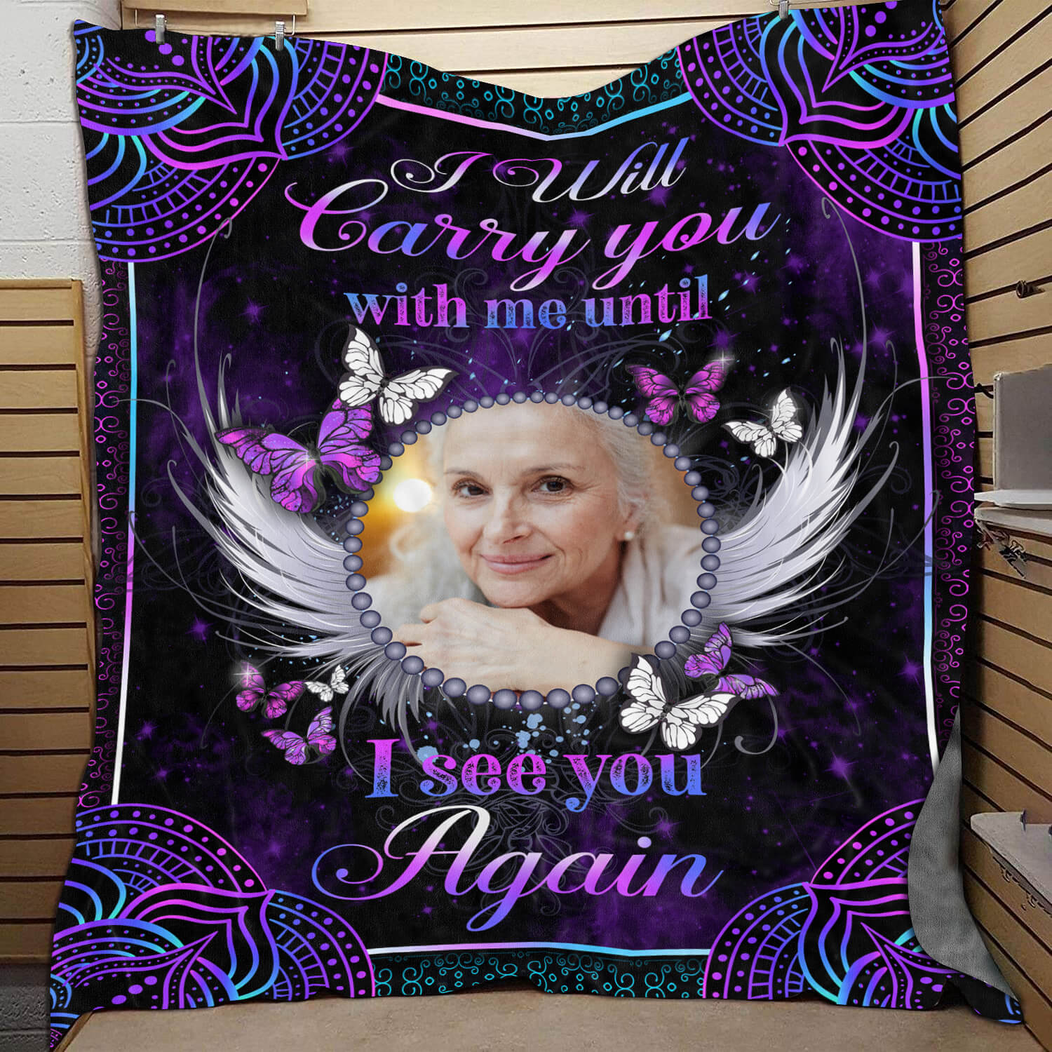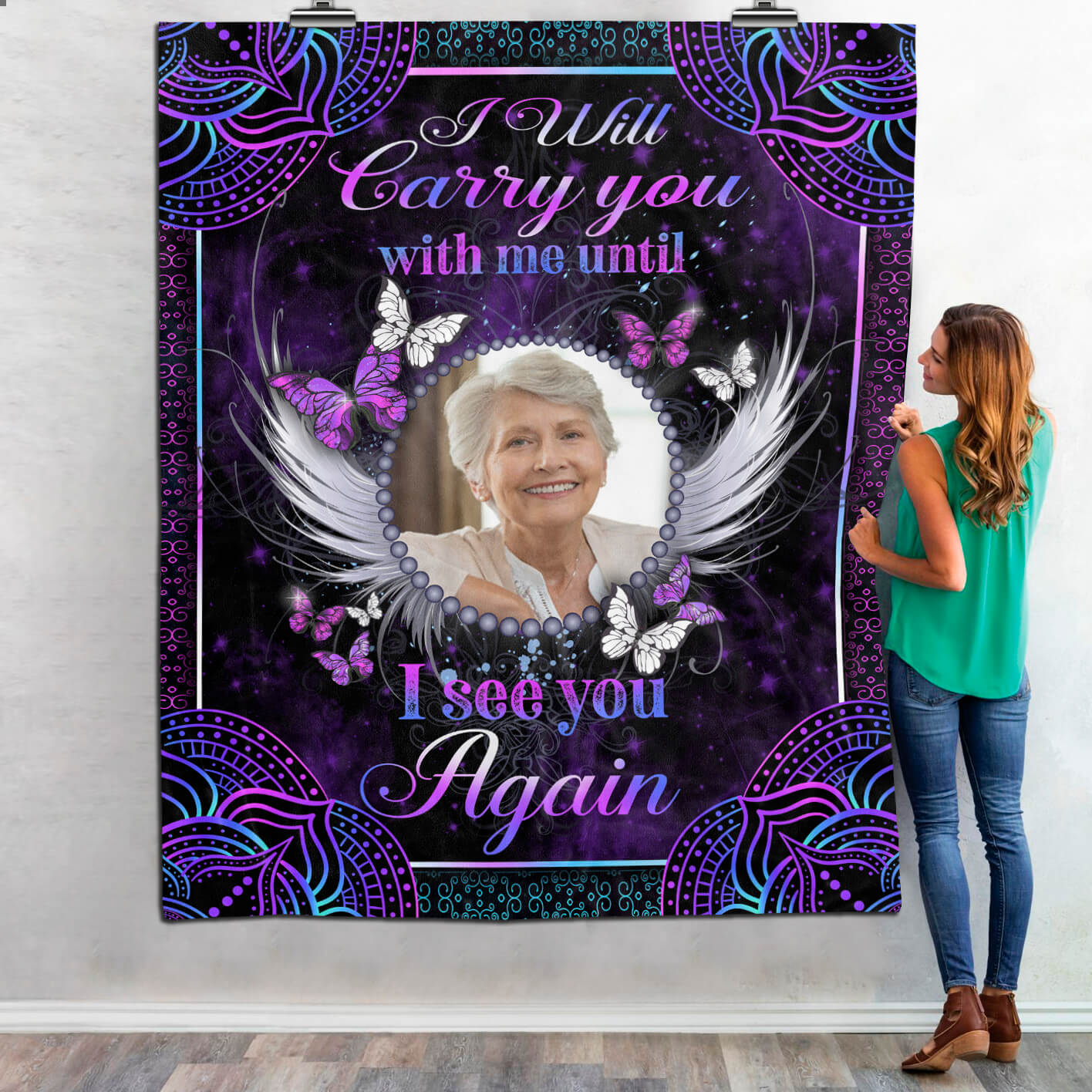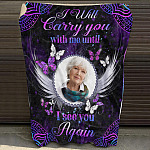 Let’s Shop I Will Carry You With Me Until I See You Again Personalized Photo Memorial Blanket Angel Wings Image Blanket!