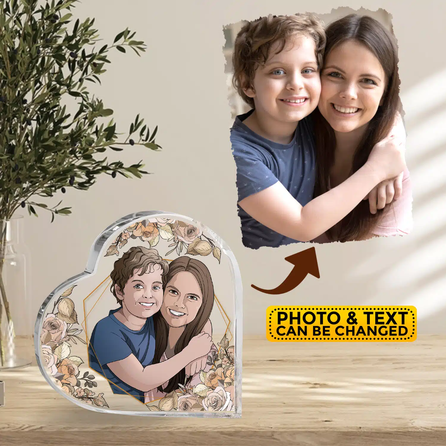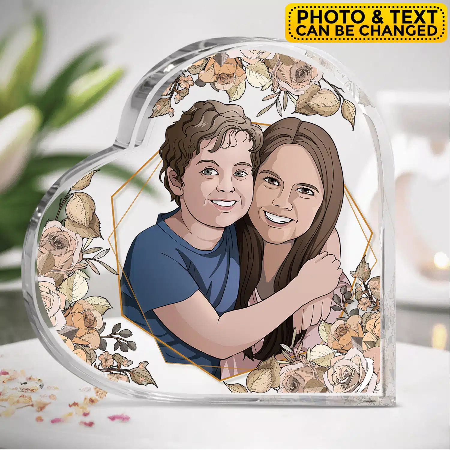 Personalized Portrait from Photo Mom Son Daughter Acrylic Plaque Keepsake – Custom Drawing Family Mothers Day Gift