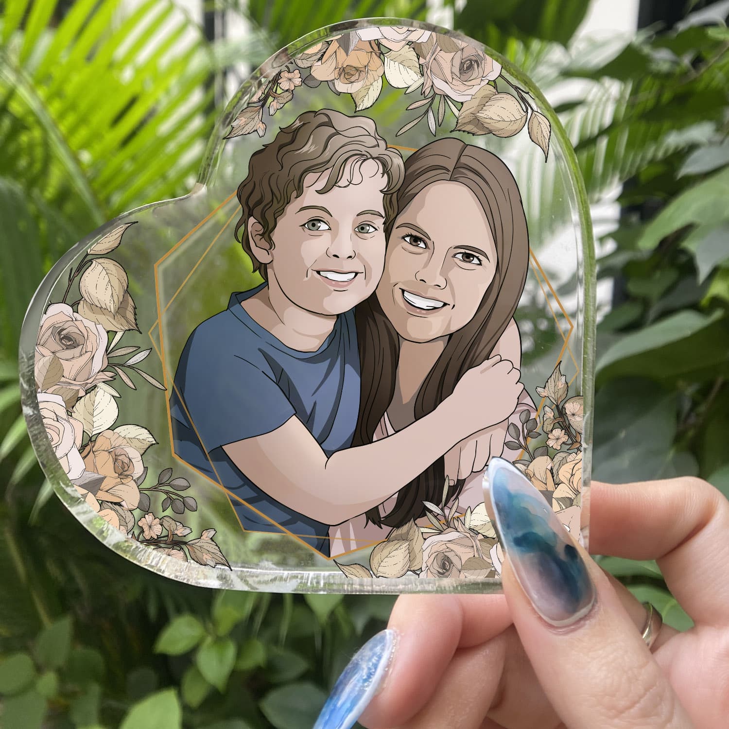 Personalized Portrait from Photo Mom Son Daughter Acrylic Plaque Keepsake - Custom Drawing Family Mothers Day Gift