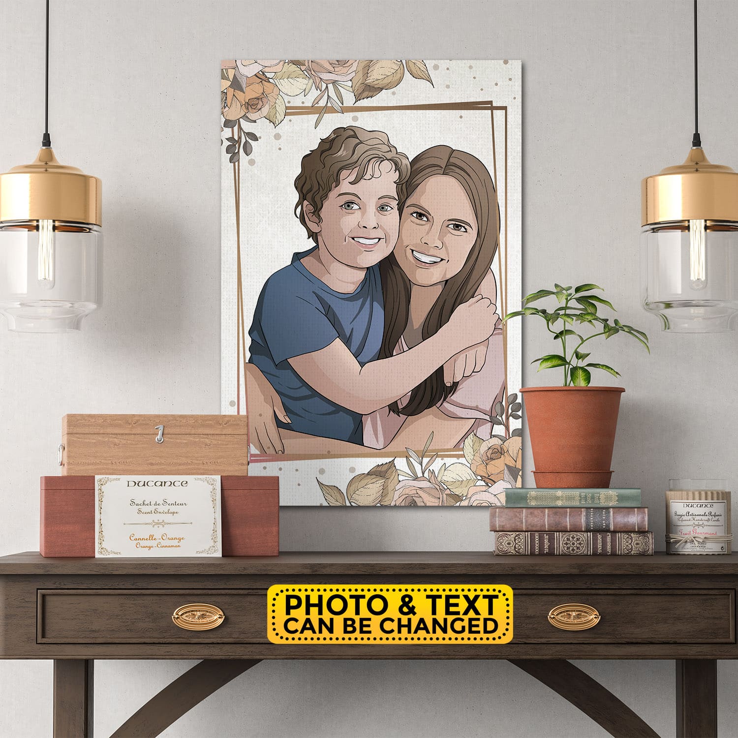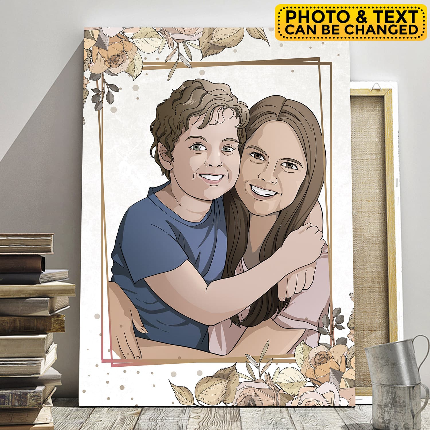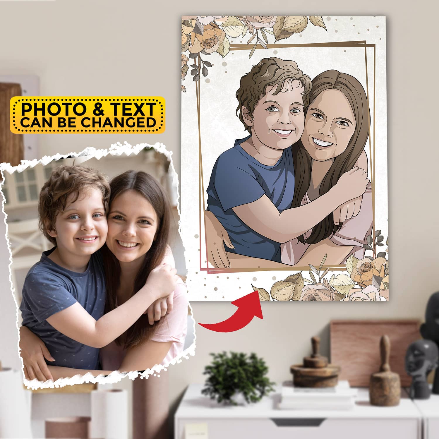 Let’s Shop Personalized Portrait from Photo Mom Son Daughter Framed Canvas Poster – Custom Drawing Family Mothers Day Gift!