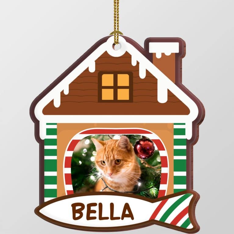 Let’s Shop Personalized Cat In Christmas House Photo Pet Cat Decorative Custom Shaped Wooden Christmas Ornament Keepsake!