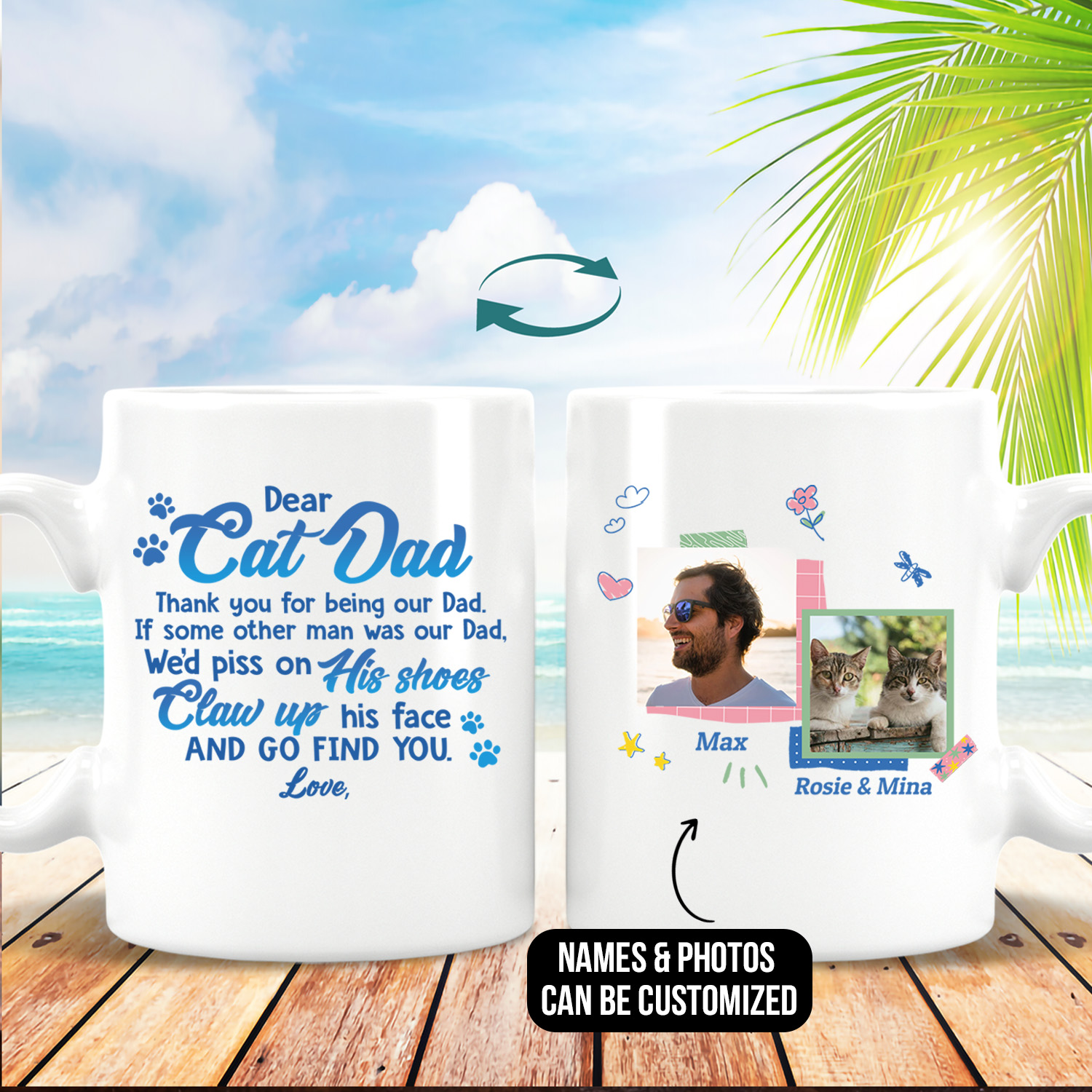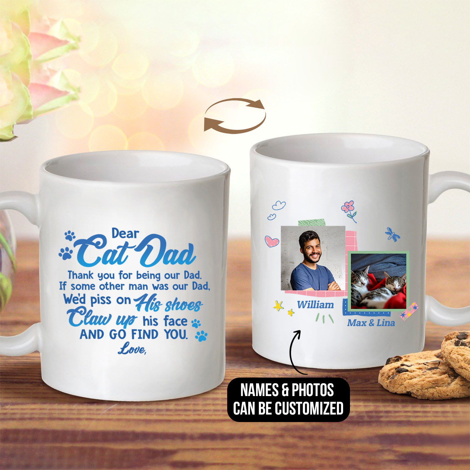 Let’s Shop Personalized Photo Dear Cat Dad Thank You for Being Our Dad if Some Other Man Two Sided Ceramic Coffee Mug!