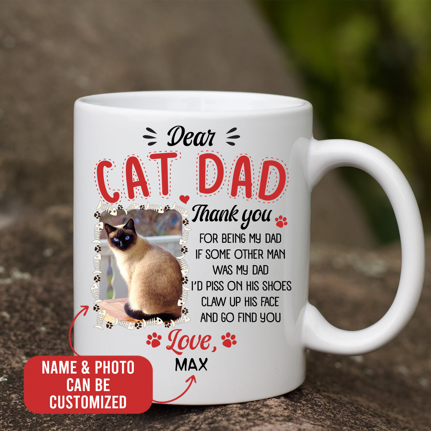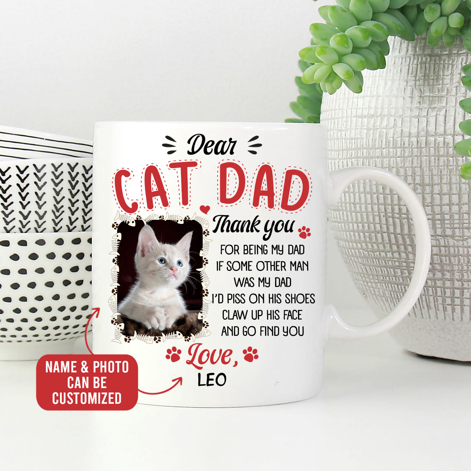 Let’s Shop Personalized Photo Dear Cat Dad Thank You For Being My Dad Ceramic Coffee Mug – Beer Stein – Water Bottle!