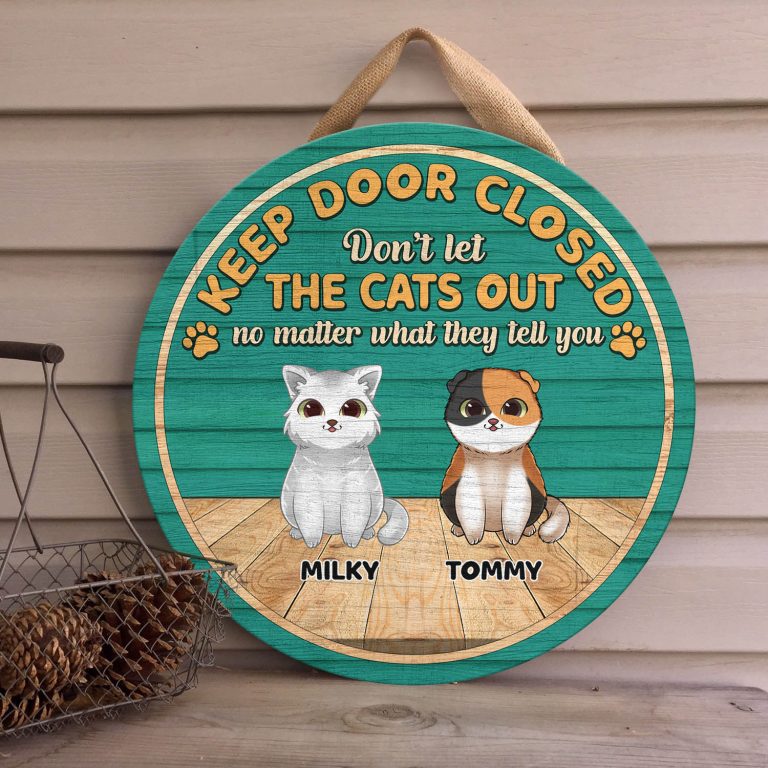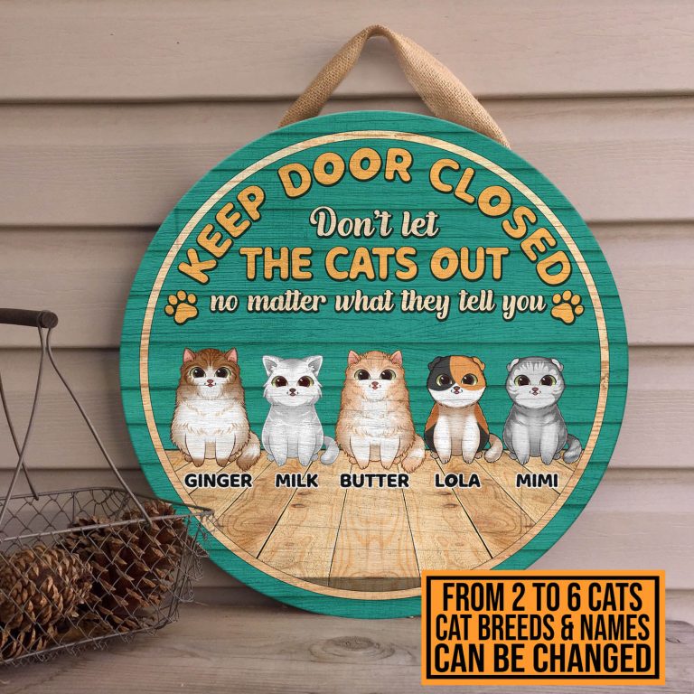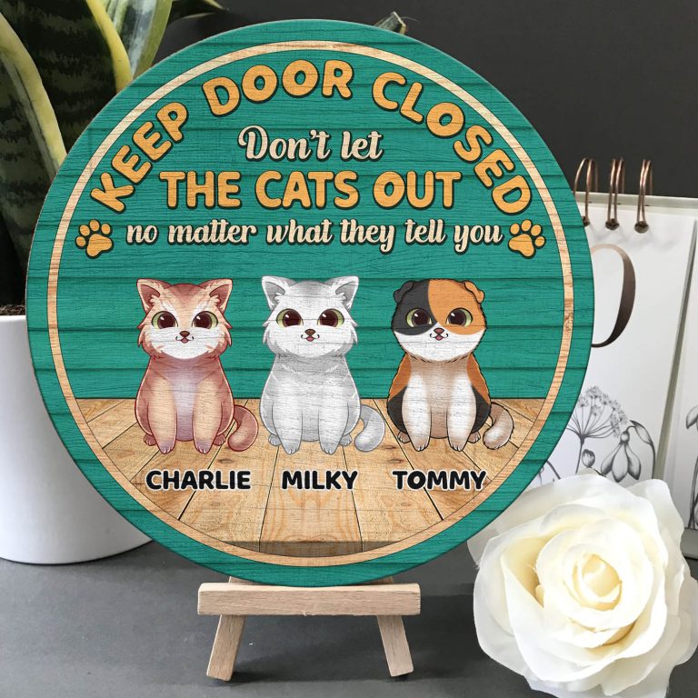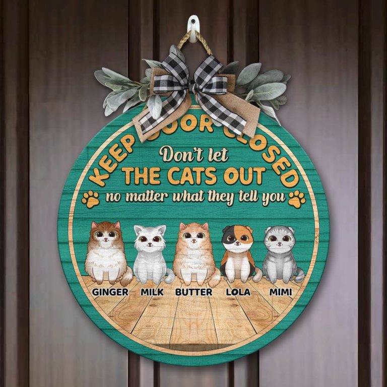 Let’s Shop Personalized Peeking Cat Keep Door Closed Don’t Let The Cats Out Decorative Wooden Door Sign – Cat Lover Gift!