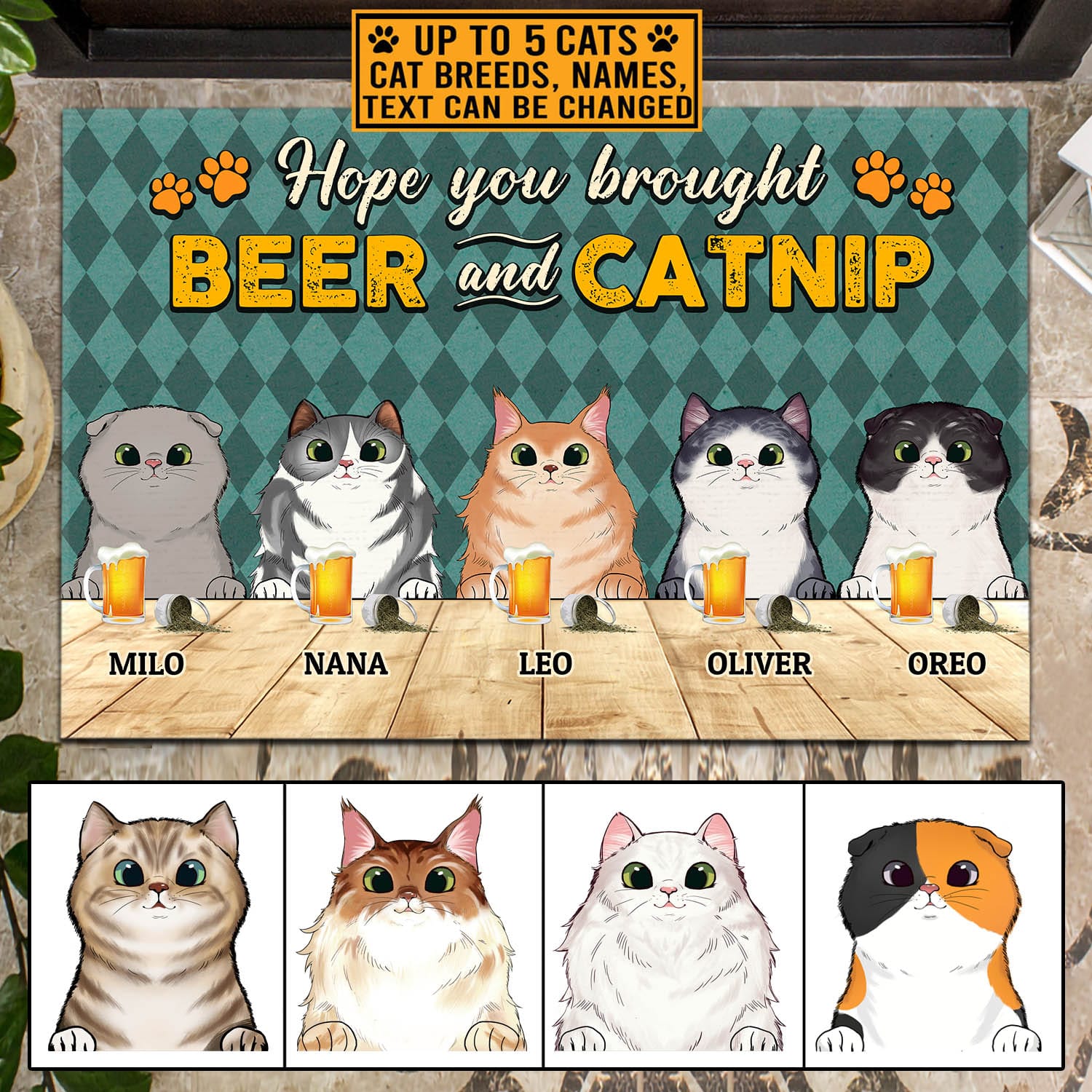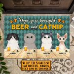 Let’s Shop Custom Cat Breeds Hope You Brought Beer And Catnip Funny Clipart Entrance Indoor Outdoor Decorative Doormat!