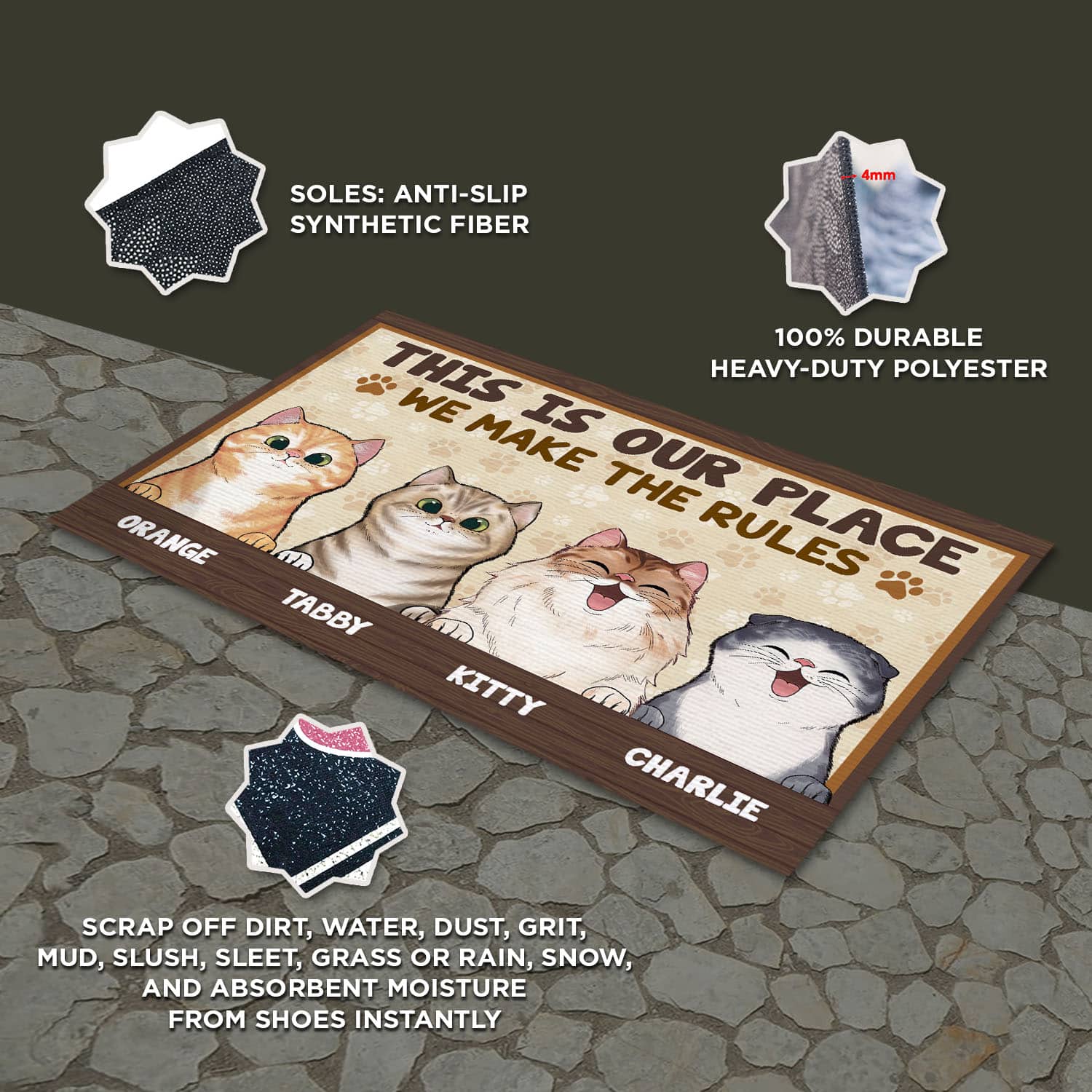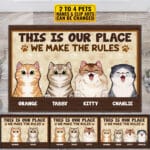 Let’s Shop This Is Our Place We Make The Rules Funny Personalized Cats Doormat, Cats Welcome Doormat!