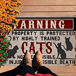 Let’s Shop Warning This Property is Protected by Highly Trained Cats Funny Indoor Outdoor Decorative Doormat!