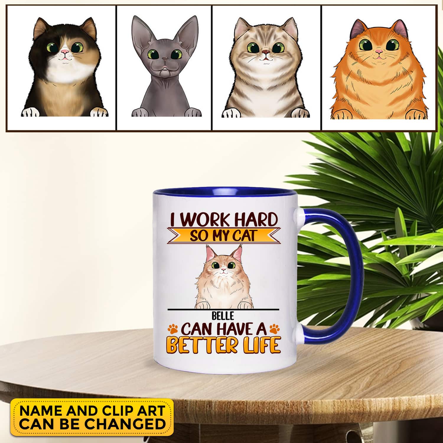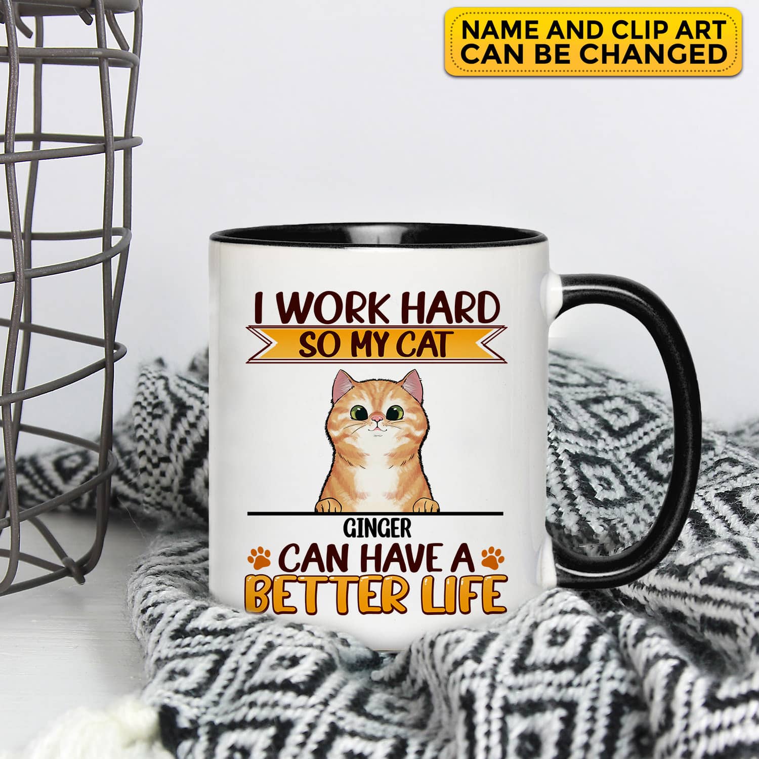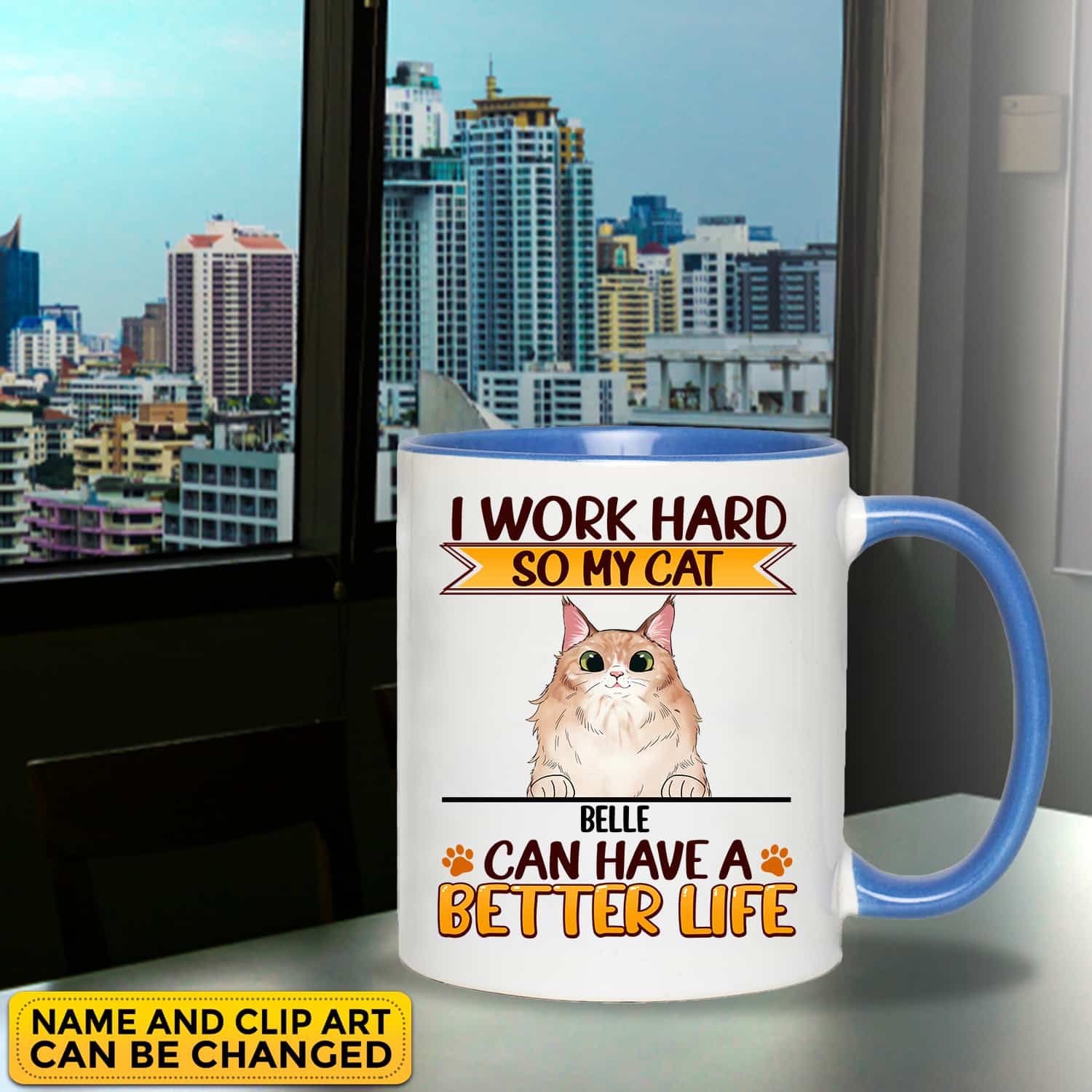 Let’s Shop Personalized I Work Hard So My Cat Can Have A Better Life Accent Mug Cup – Cat Lovers Cup!