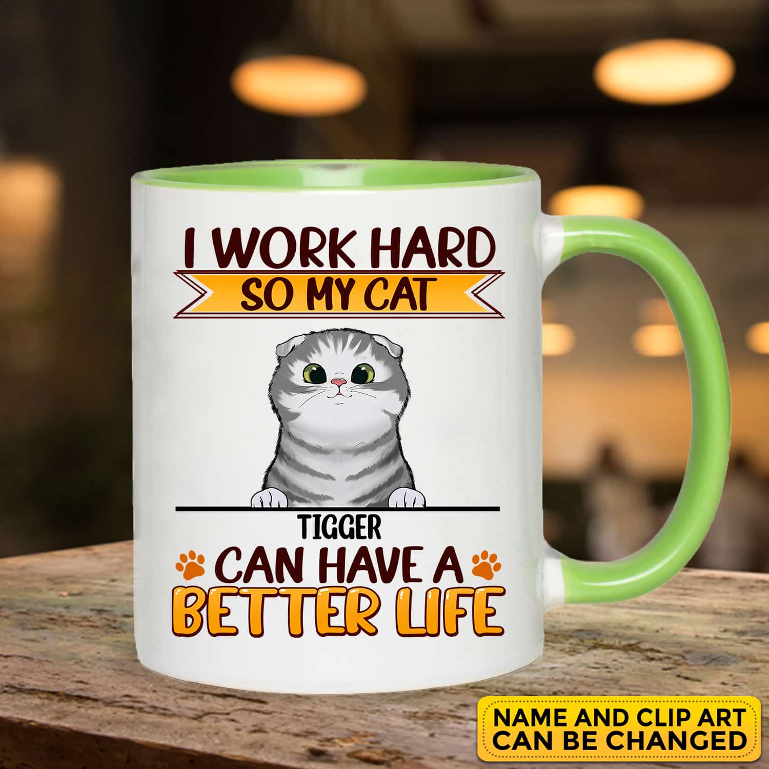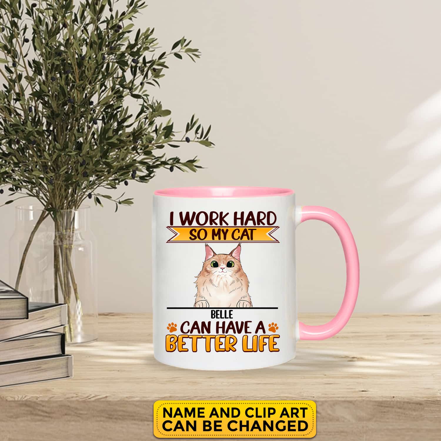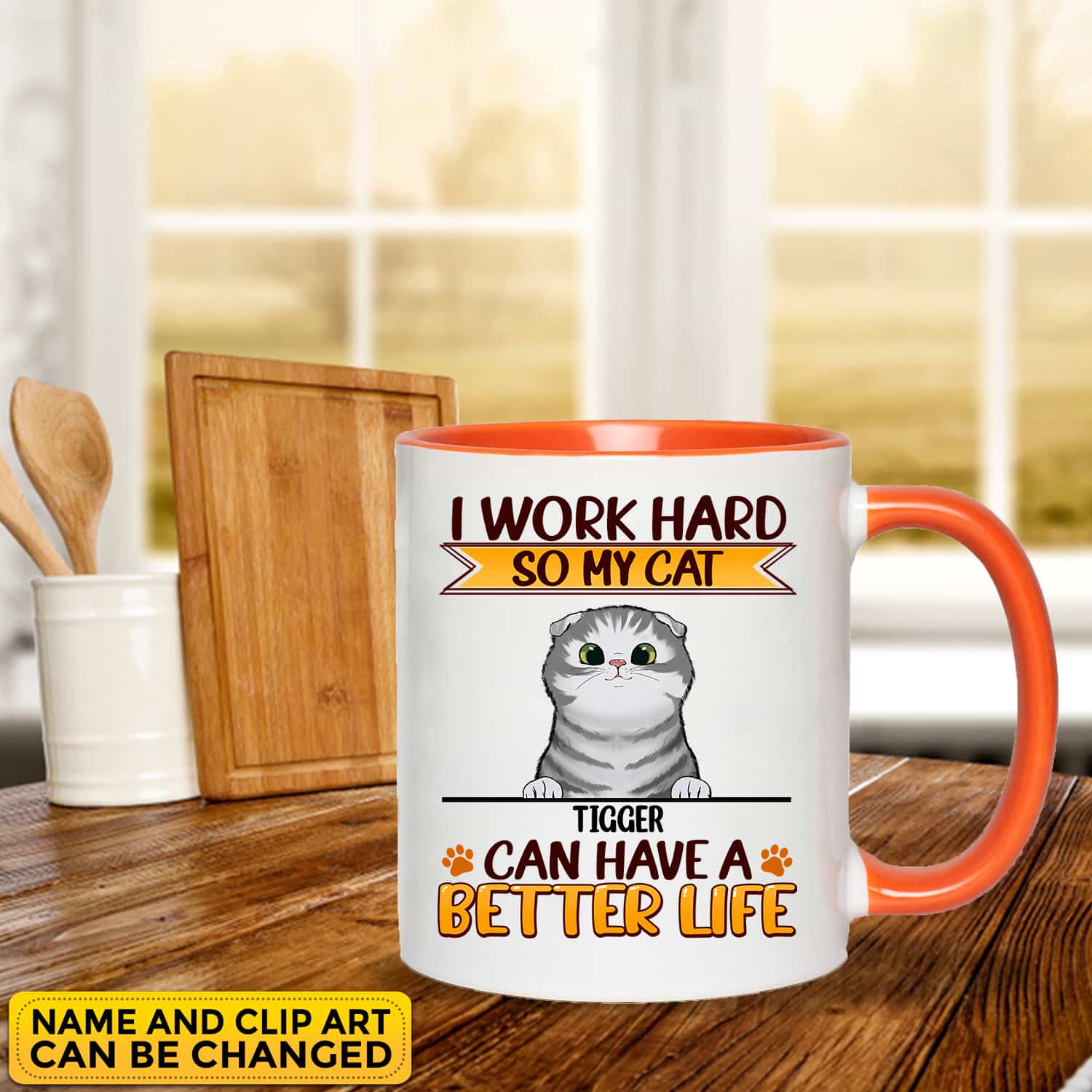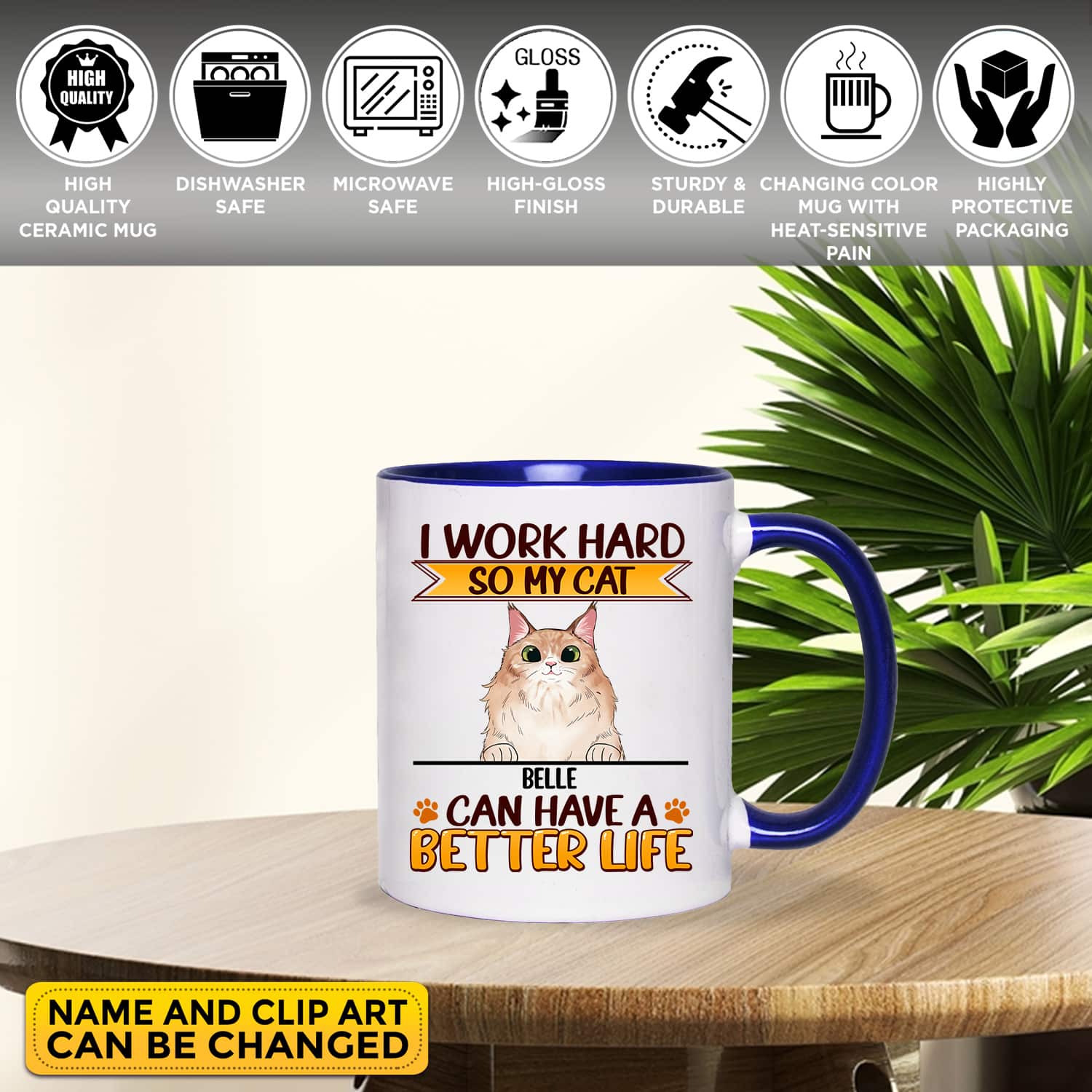Let’s Shop Personalized I Work Hard So My Cat Can Have A Better Life Accent Mug Cup – Cat Lovers Cup!