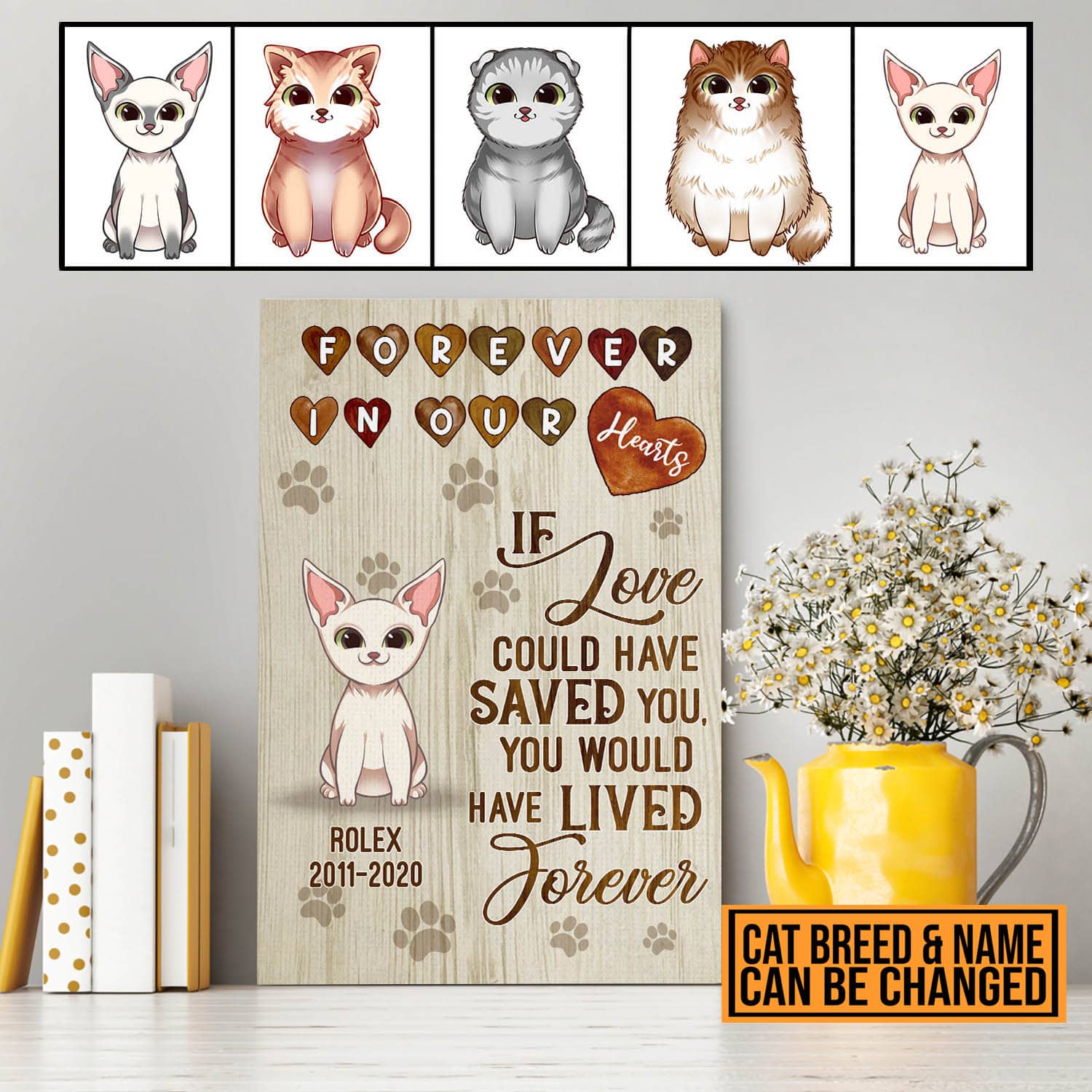 Let’s Shop Personalized Forever In Our Hearts Cat Memorial Canvas Prints – Unframed Poster – Home Decor Wall Art!
