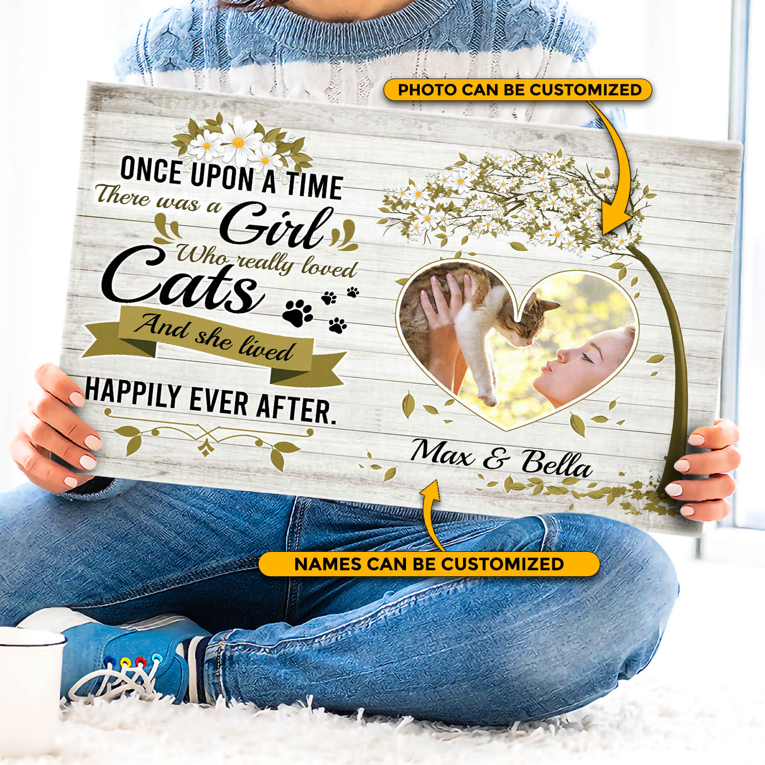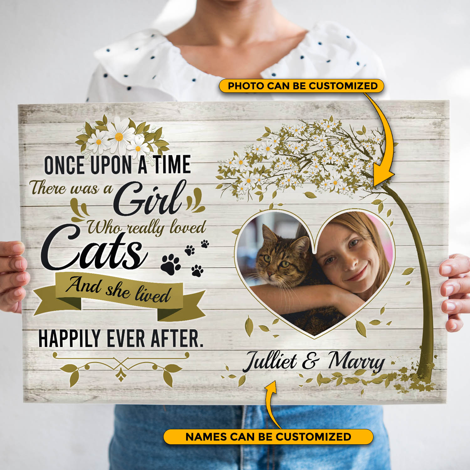 Let’s Shop Personalized Photo Once Upon A Time There Was a Girl Who Really Loved Cats Framed Canvas – Unframed Poster!