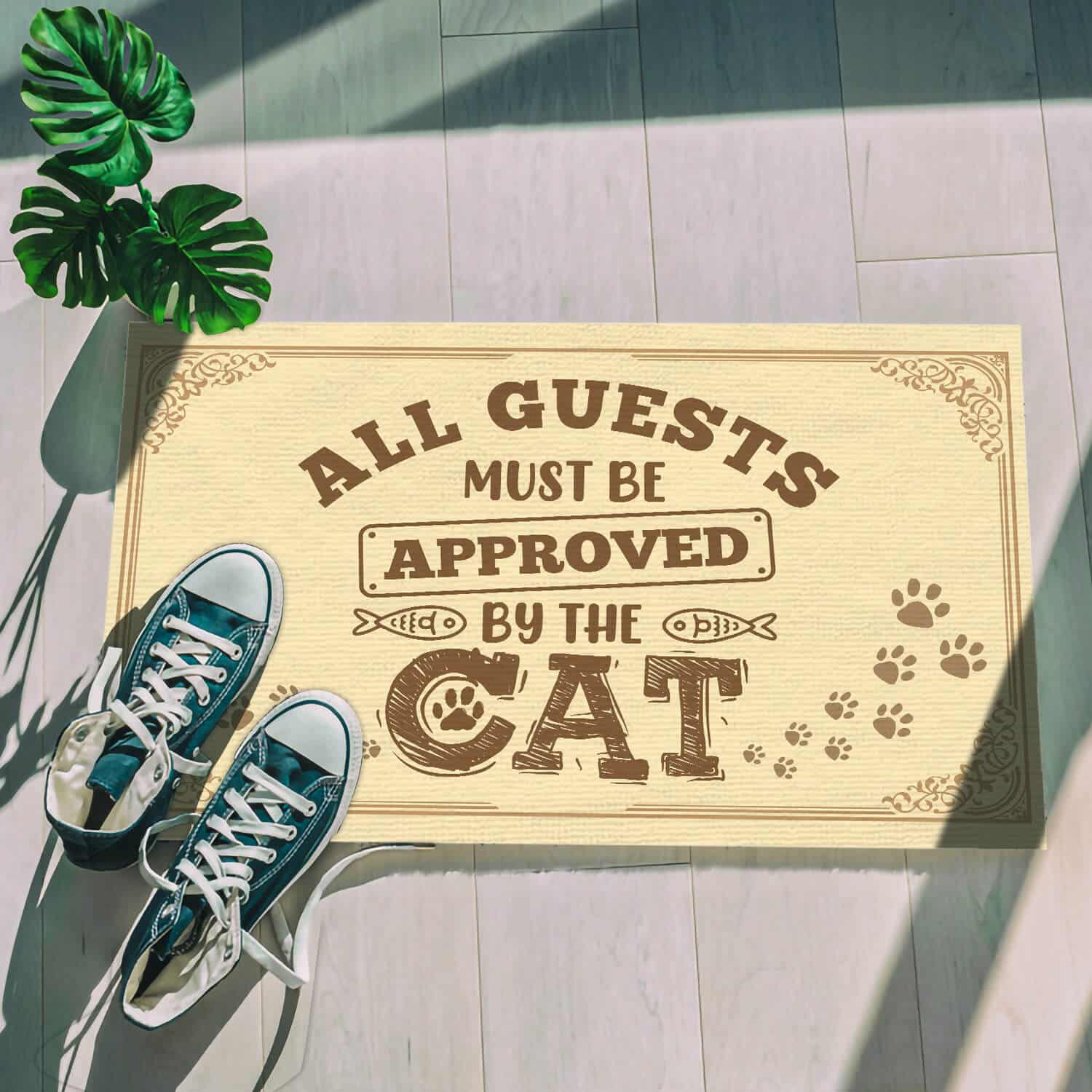 Let’s Shop All Guests Must Be Approved by The Cat Funny Indoor Outdoor Decorative Doormat!