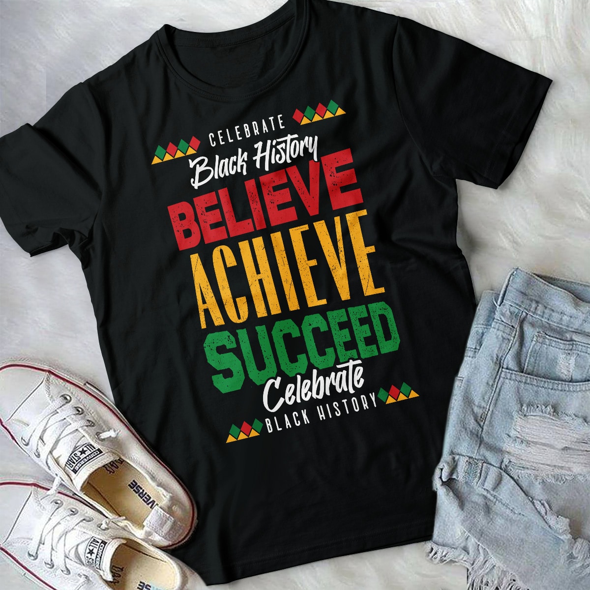 Celebrate Black History Believe Achieve Succeed T-Shirt – V-Neck – Black History Month Shirt