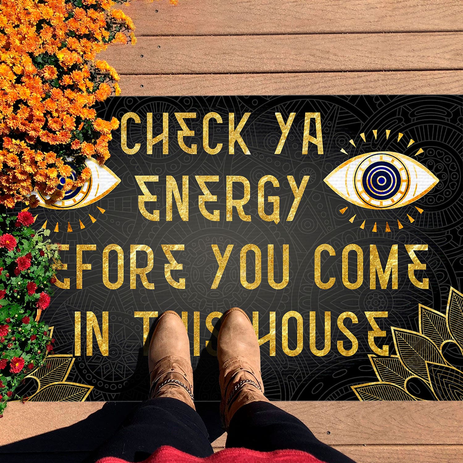 Let’s Shop Check Ya Energy Before You Come in This House Evil Eyes Doormat – Funny Saying Doormat!