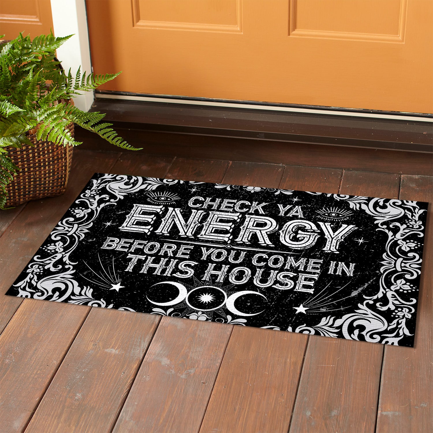 Let’s Shop Check Ya Energy Before You Come in This House Witch Doormat – Halloween Witches Doormat Decorations!